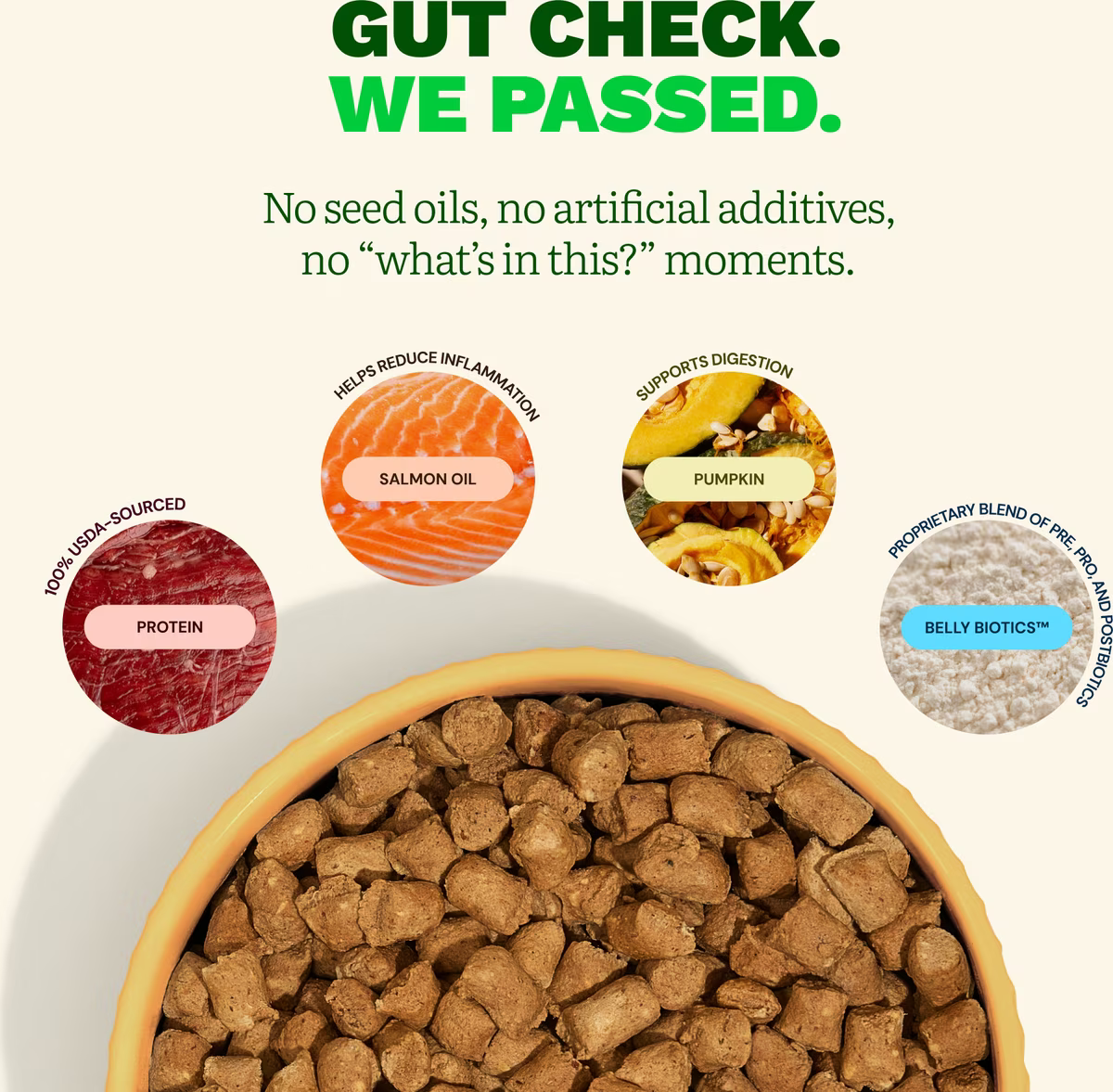 It may promote better poops, puppy-like energy, fewer sick days, healthier weigh-ins, fresher breath, and a shiny coat.