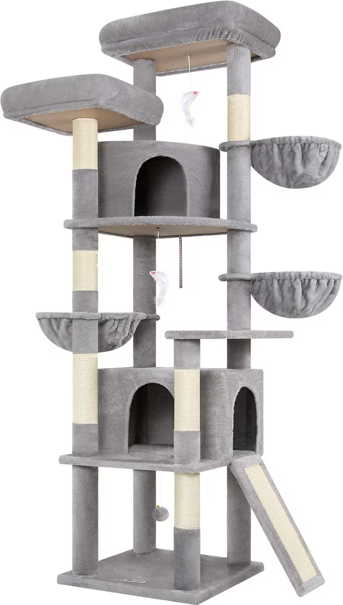 Globlazer 76-in Extra Tall Multi-Level Cat Tree & Condo, Light Gray