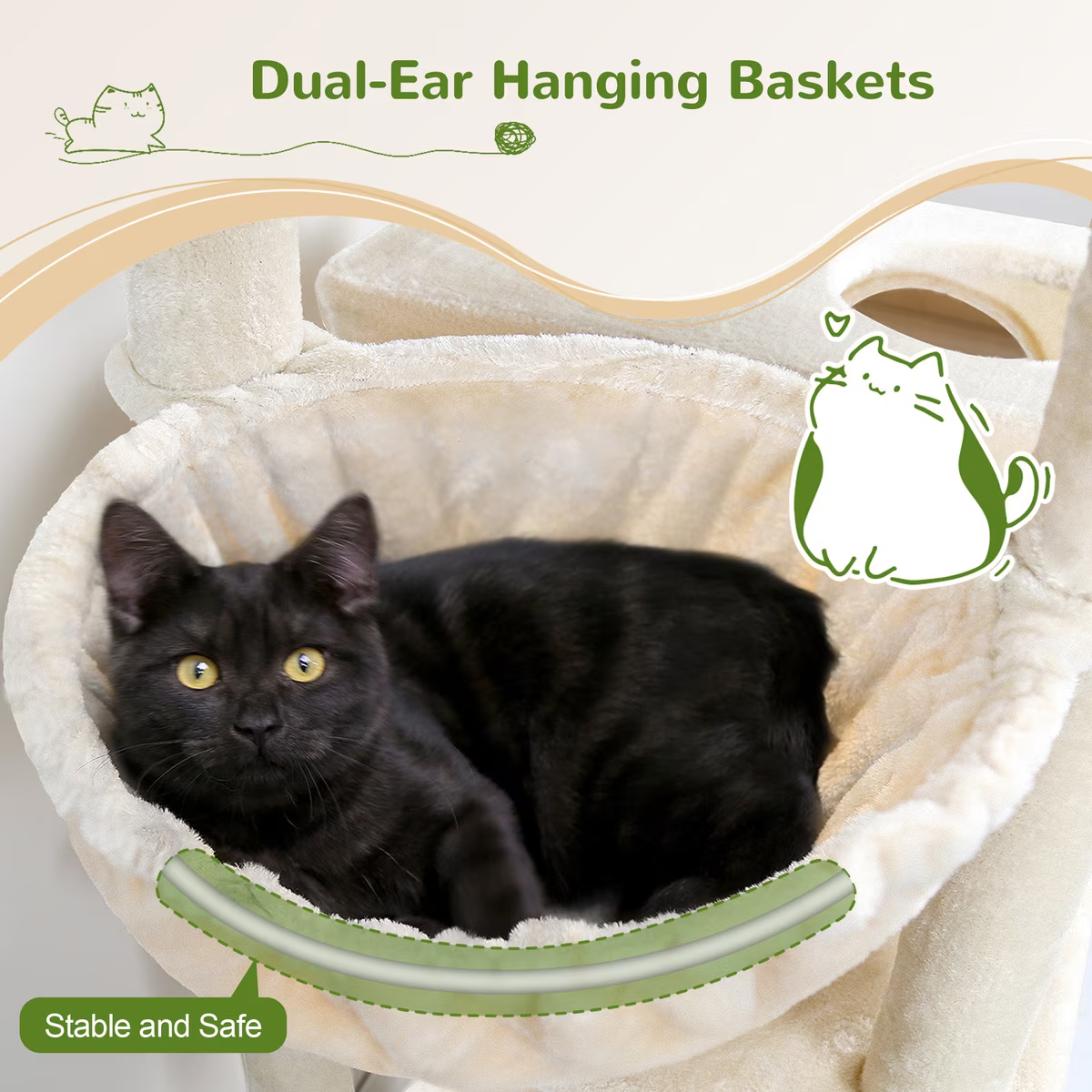 The Globlazer 77.9-in Heavy Duty Cat Tree is the purr-fect resting and playing spot for your feline friends. This multi-level cat tree is designed for stability, with sturdy posts and an enlarged base plate to prevent tipping. For added safety, an anti-tip strap is included to keep your best friends secure while they play. Two spacious condos feature wide openings for ventilation plus padded linings for luxurious cat naps. The tower also includes strategically placed umping platforms and a cushioned top perch, so your kitty can watch their kingdom. A cozy hanging basket provides a suspended resting space that’s sure to be a favorite spot for sunbathing, giving your best friend tons of choices in how they use this tree.