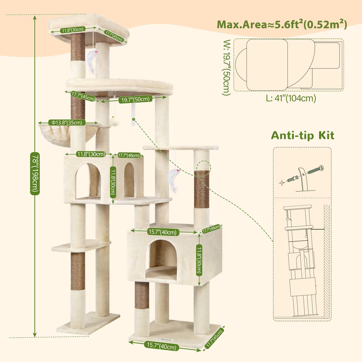 Globlazer 77.9-in Heavy Duty Cat Tree, Beige