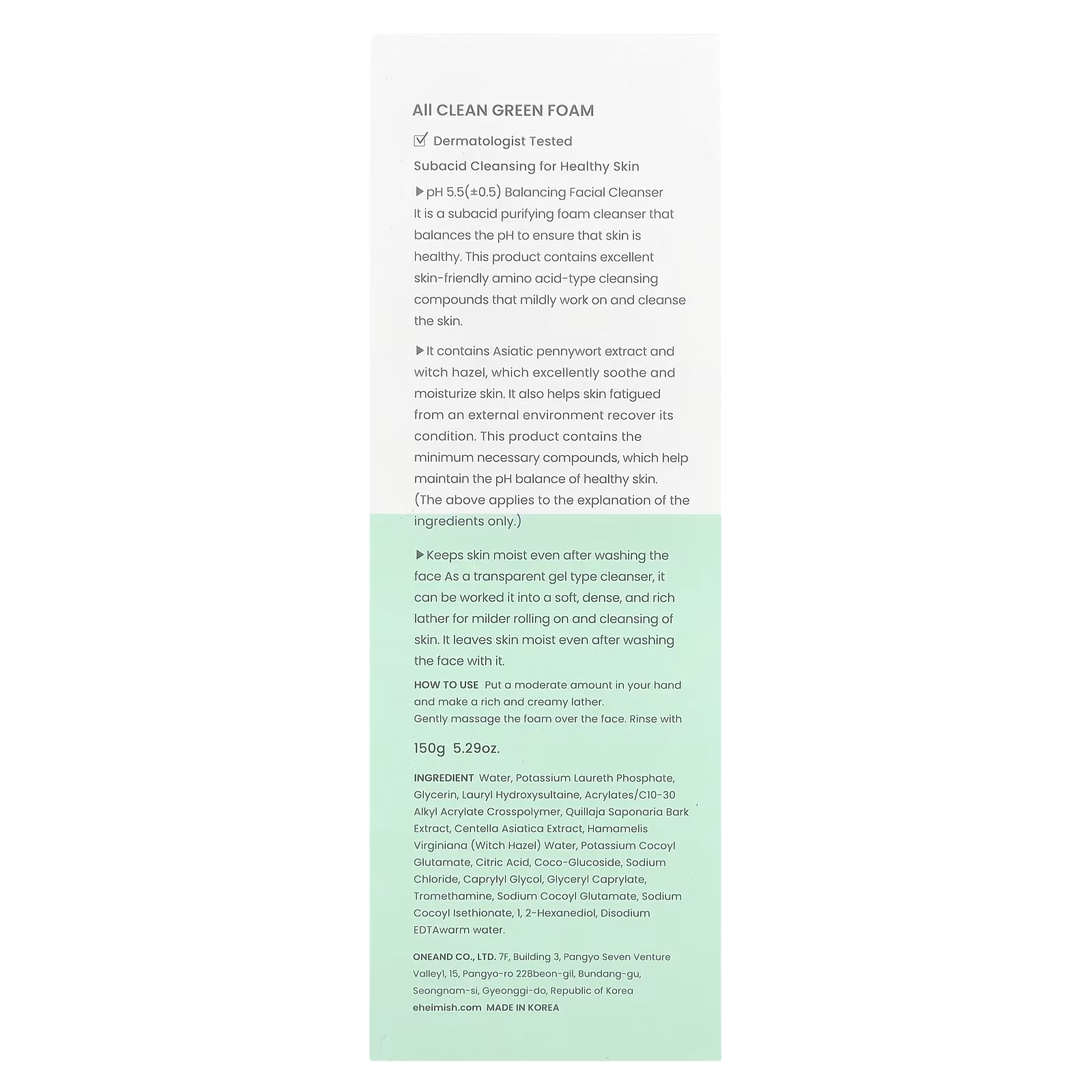 Heimish, All Clean Green Foam Facial Cleanser, 5.29 oz (150 g)