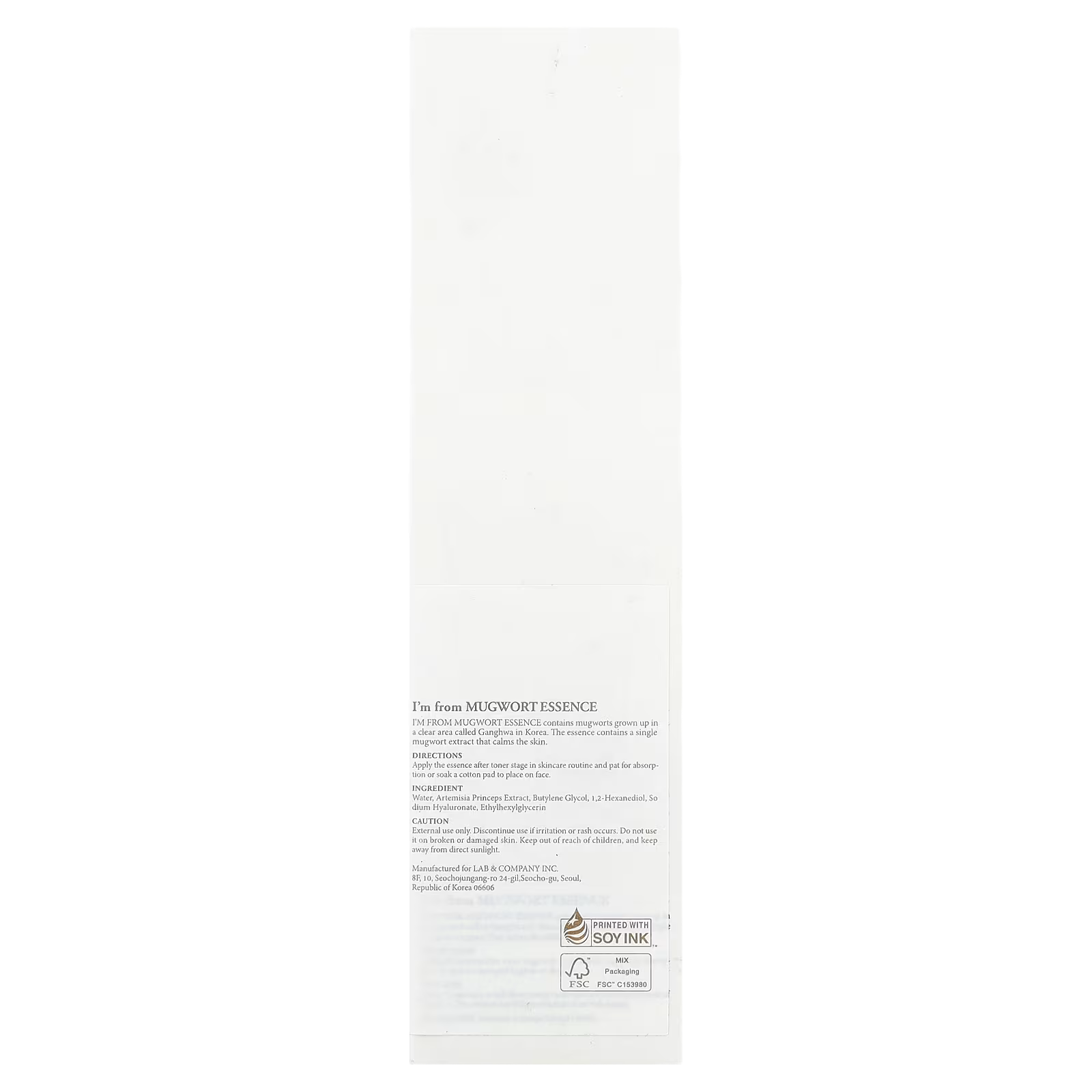 I’m from Mugwort Essence contains mugworts grown up in a clear area called Ganghwa in Korea. The essence contains a single mugwort extract that calms the skin.