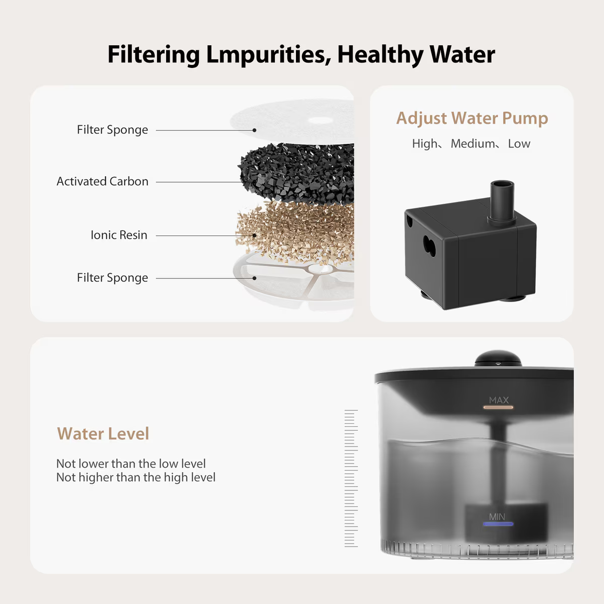 A triple filtration system in the water fountain ensures fresh, clean water for your little buddies.