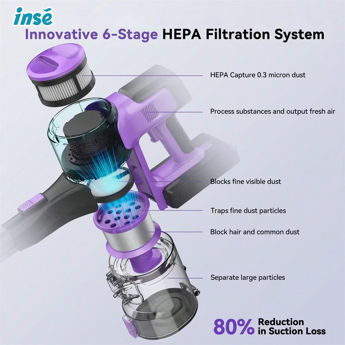 INSE S10 6-in-1 Cordless Stick Vacuum, Purple