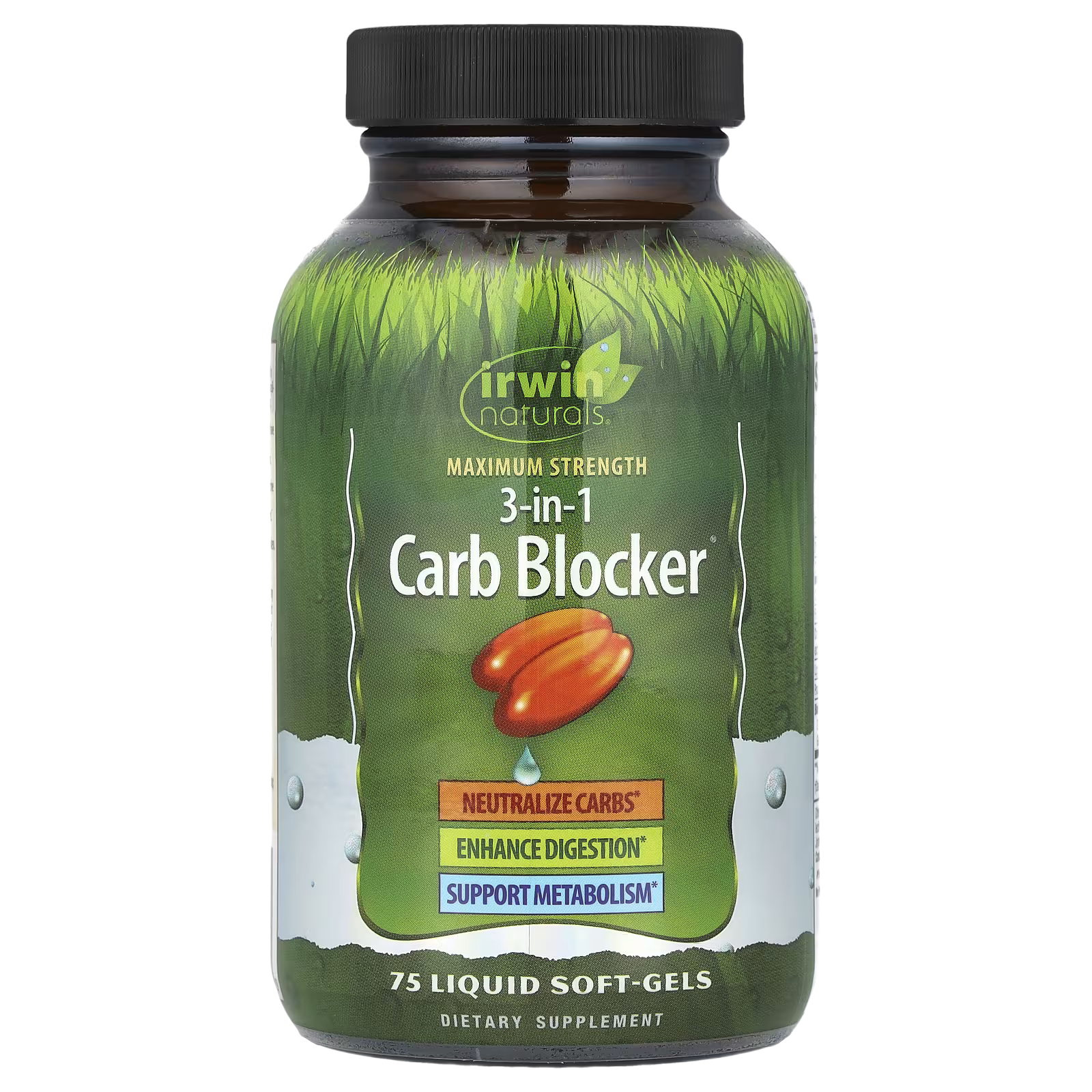 Irwin Naturals, 3-In-1 Carb BlockerĀ®, Maximum Strength, 75 Liquid Soft-Gels