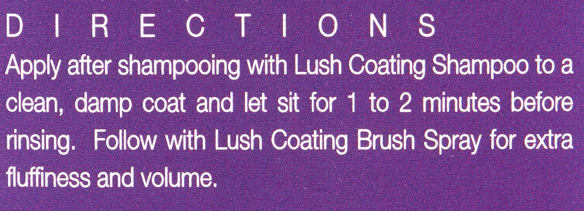 Isle of Dogs Lush Coating Conditioner for Dogs is a rejuvenating protein-based product that helps prevent damage and add fullness and a textured feel to your pet’s coat. Lush Coating was specifically designed to help moisturize and condition without flattening or softening the coat like a regular conditioner. Regular use helps to release dead coat, which cuts down on shedding post-bath. This sweet smelling conditioner features Isle of Dogs’ signature Violet + Sea Mist fragrance.
