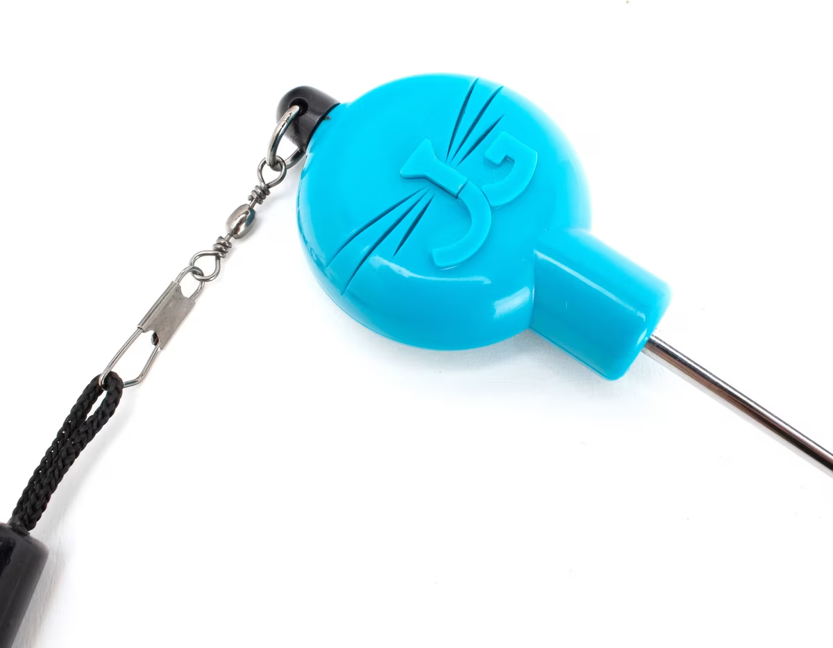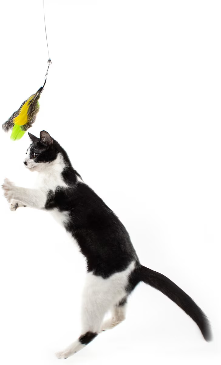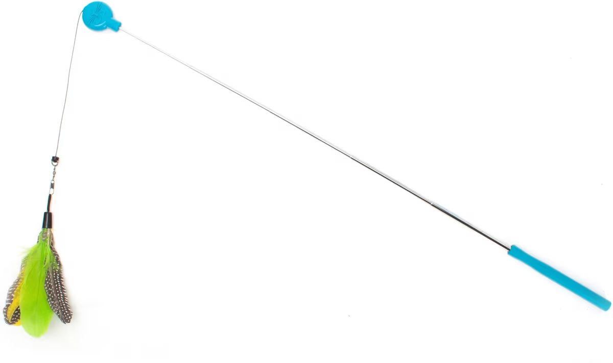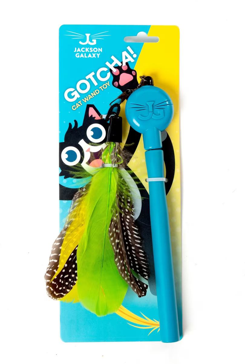 Unleash your cat’s primal instincts with the Jackson Galaxy Gotcha! Wand Cat Toy. Designed with cats’ hunting habits in mind, this toy beautifully mimics flight patterns and—thanks to its feather configuration—even makes the whooshing sound of a passing bird. As an added bonus, the unique clicking sound when the string is extended acts as an unmistakable cue your kitty that it’s go time. The telescoping wand can take the toy from your back pocket to its full 31” length for playtime anytime, too. Let the toy fly through the air to simulate the hunt for airborne targets, or drag it on the floor to mimic your cat’s favorite ground prey. This wand toy will take play sessions from 0 to 11 in in no time!