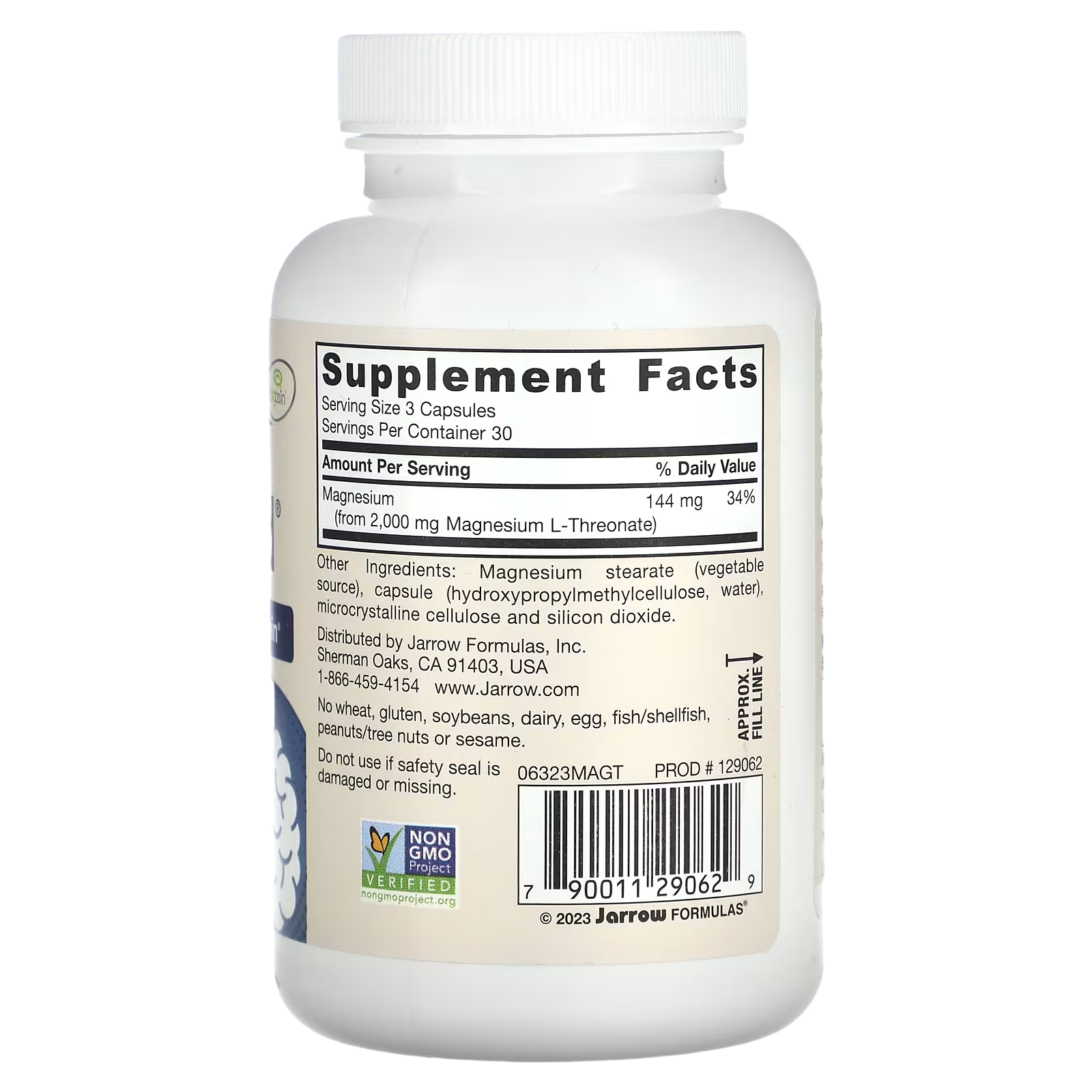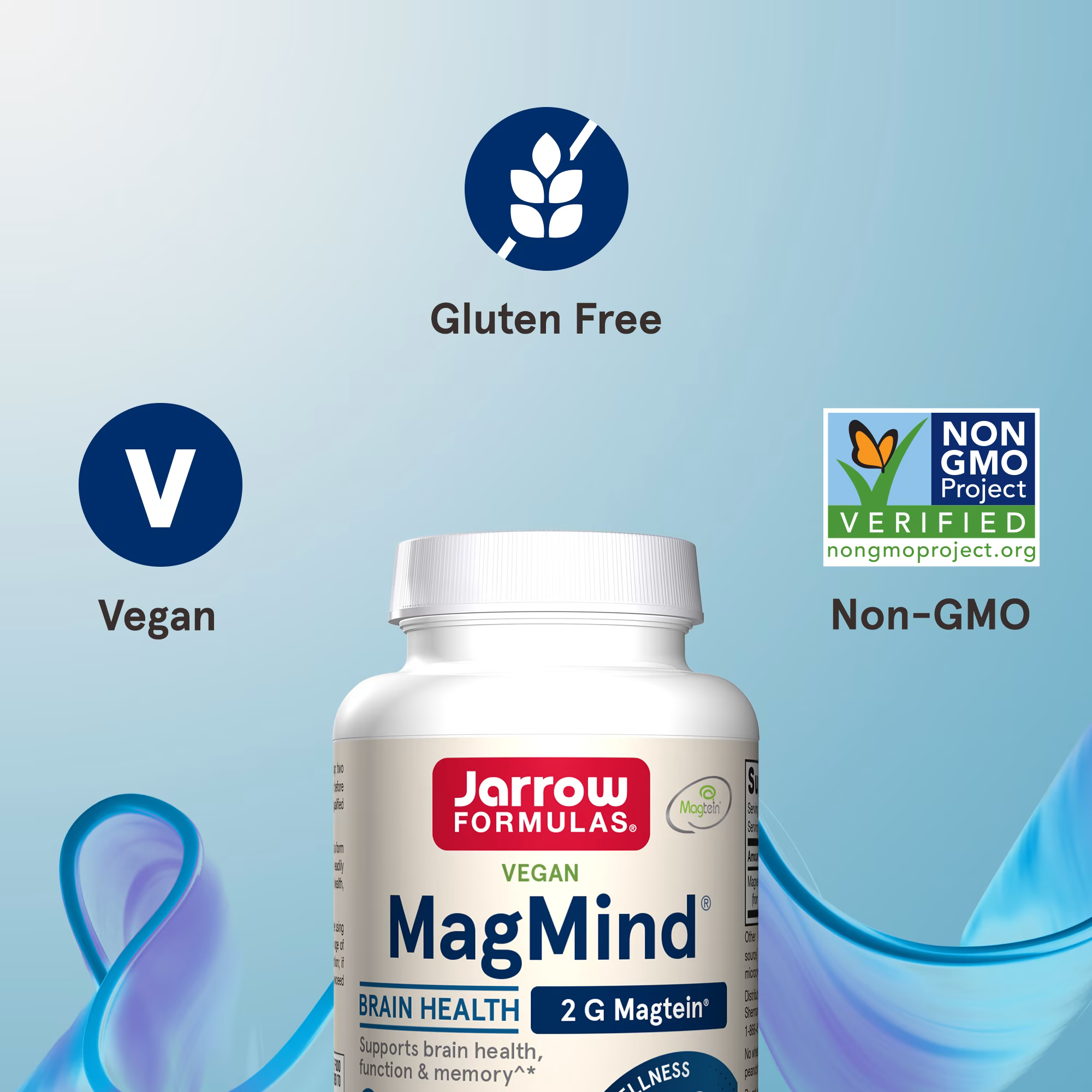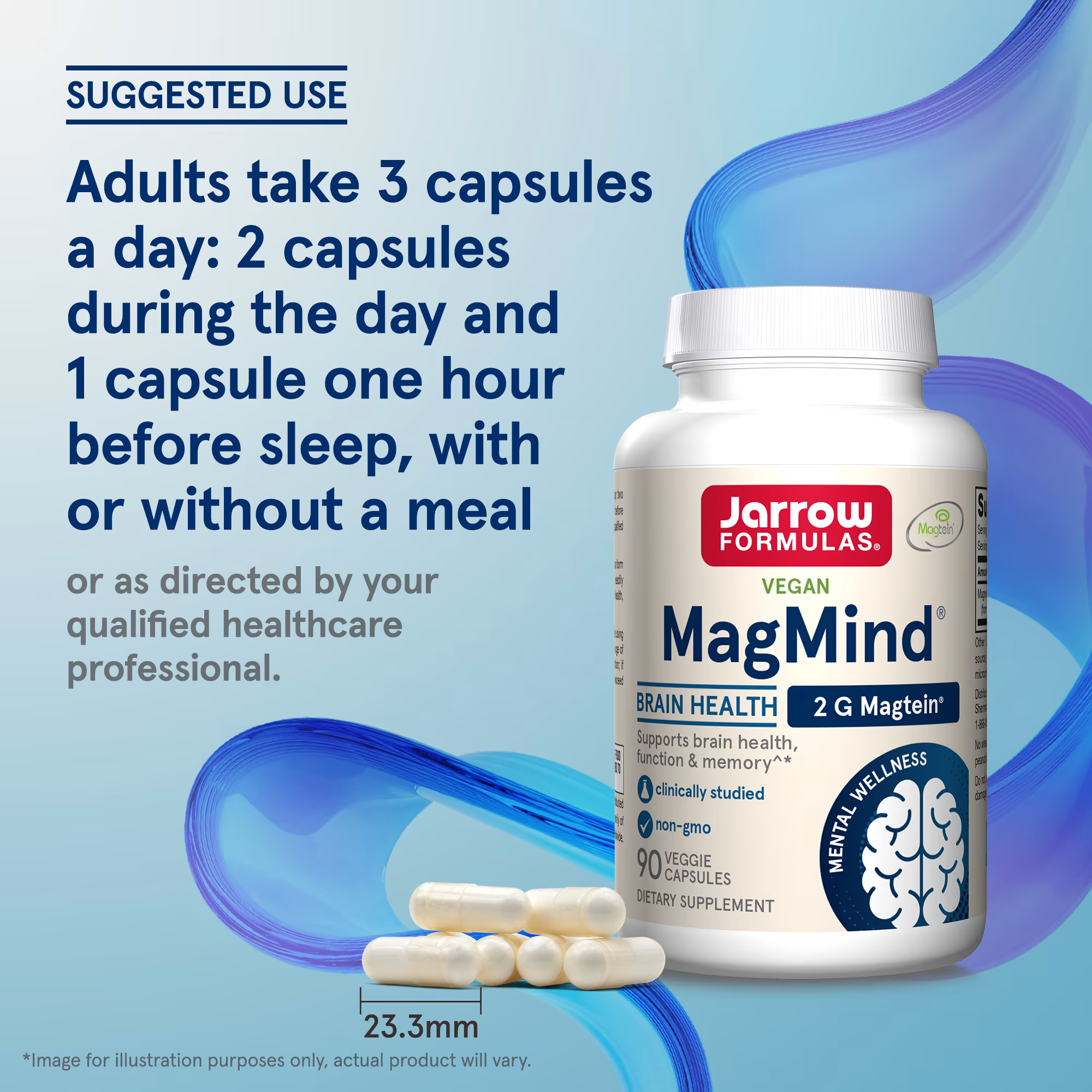 Jarrow Formulas® MagMind®, featuring Magtein®, is a form of magnesium from Magnesium L-Threonate that readily crosses the blood-brain barrier and supports brain health, function, and memory in healthy adults.