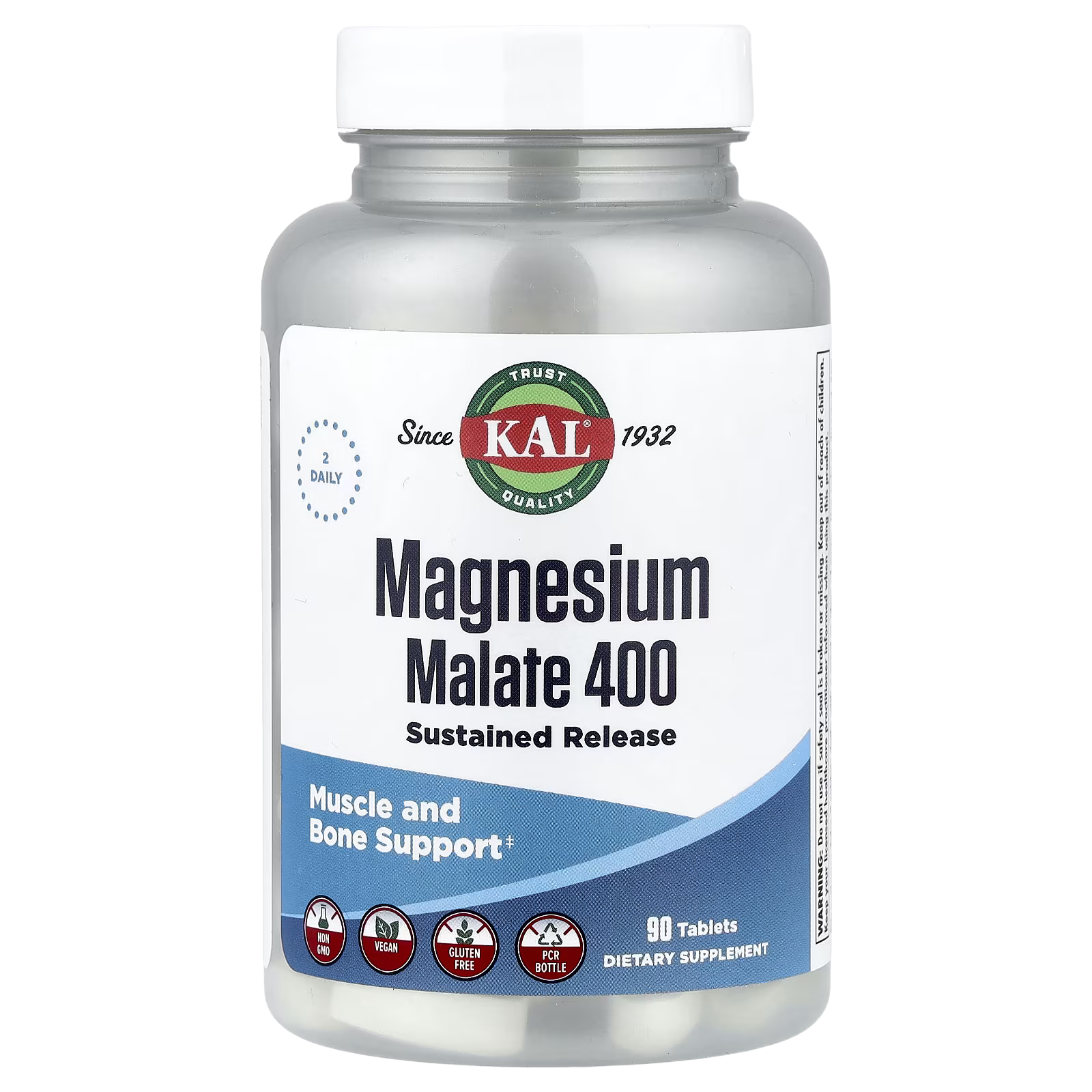 KAL, Magnesium Malate 400, 90 Tablets (200 mg per Tablet)