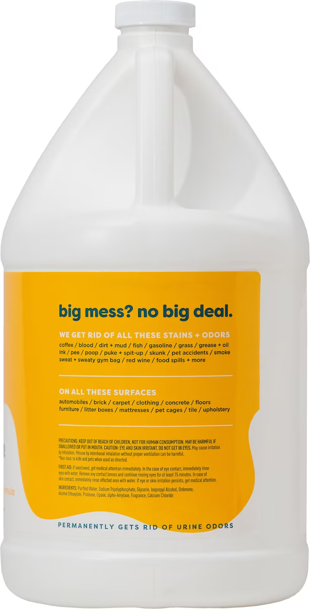 Keep your home tidy and fresh with KIDS ‘N’ PETS’ Instant All Purpose Stain & Odor Remover! This multi purpose cleanser is the perfect way to tackle tough stains like urine, feces and vomit while completely removing lingering and unpleasant odors. Hard working enzymes break down stains and undo odors quickly and efficiently without leaving behind flowery or strong fragrances. Use it to clean up after uh-oh moments such as muddy paw prints, piddle or spills. Plus, this safe formula is mild and gentle enough for use around children and pets, so you can feel good about using it in your home.