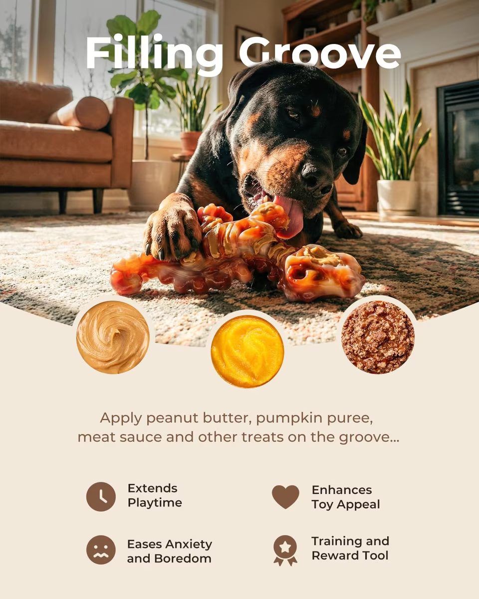 Chewing on textured toys helps clean teeth and massage gums for your pup’s dental health.