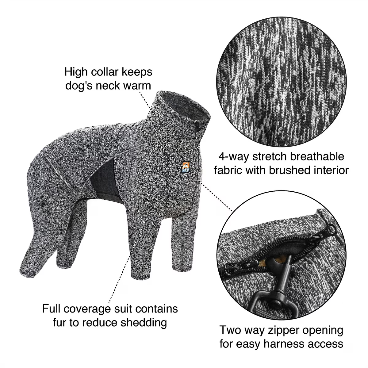 Can also be used as a post-surgery recovery suit, or as a shedding outfit to keep pet fur contained and off furniture.