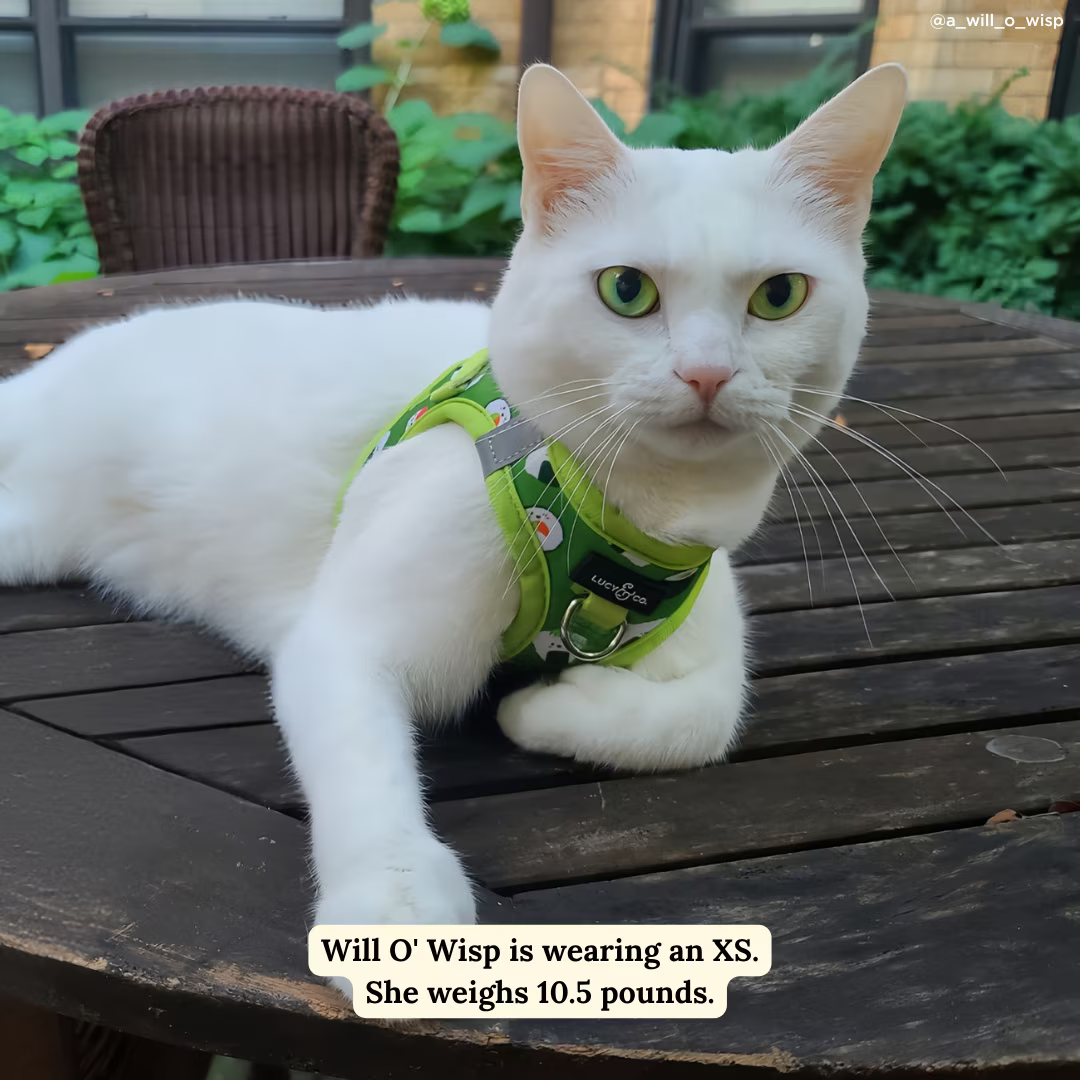 Remember to measure your pet for the perfect fit. The Lucy & Co. How I Roll Step-in Cat Harness is the perfect walkwear for your feline friend. Made with soft, breathable mesh and flexible neoprene, this harness ensures a comfortable and secure adventure for your kitty, whether it’s a backyard birdwatching session or a sidewalk strut. No more struggling to put on a harness, just step in, clip, and go. Plus, this harness features two leash attachment points, one at the front and one at the back, giving you the option to guide your purring pal gently or let them take a casual stroll. The secure buckle closure and adjustable straps provide added peace of mind, making it suitable for even the pickiest of pals. Plus, with its lightweight and flexible design, your meow machine will stay cool and comfortable on all their adventures.