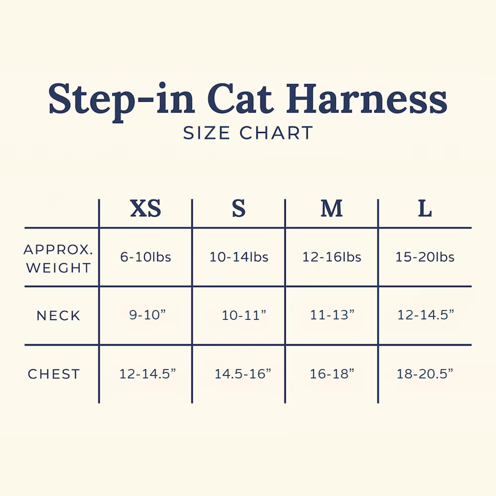 Remember to measure your pet for the perfect fit. The Lucy & Co. Take a Hike Step-in Cat Harness is the perfect accessory for adventurous feline family members. Made with soft, breathable mesh and flexible neoprene, this harness is designed to make every outdoor excursion easy, secure, and stylish for your kitty. No more struggling to put on a harness, simply step in, clip, and go. With two leash attachment points (front and back), a secure buckle closure, and an adjustable fit, this harness ensures your meow machine’s comfort and confidence on every walk. Whether they’re a curious kitten or a seasoned explorer, this harness is perfect for all purring pals. Plus, there’s even a matching collar and leash (sold separately) for a complete look.