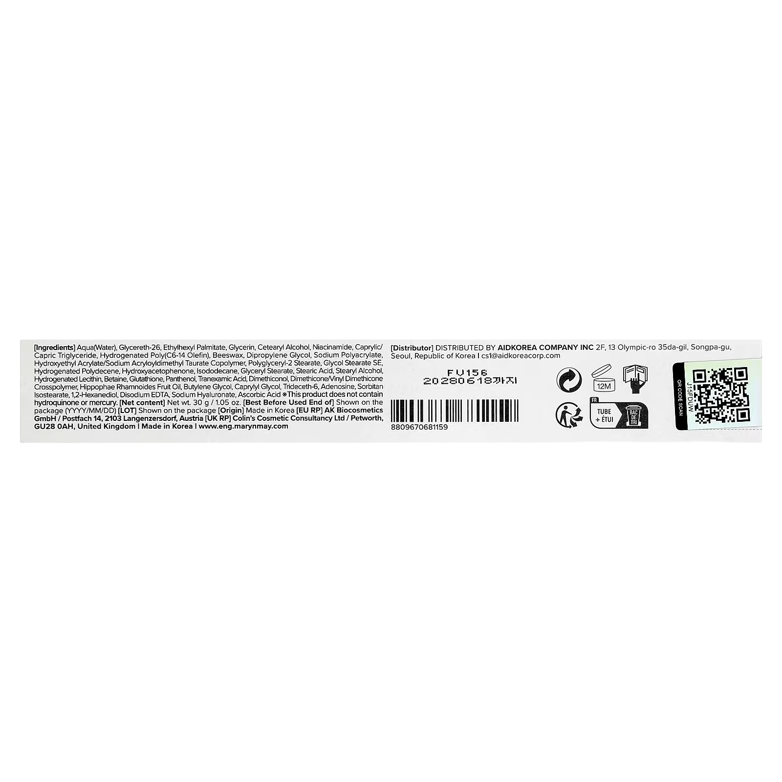 Mary & May, Tranexamic Acid + Glutathione Eye Cream, 1.05 oz (30 g)