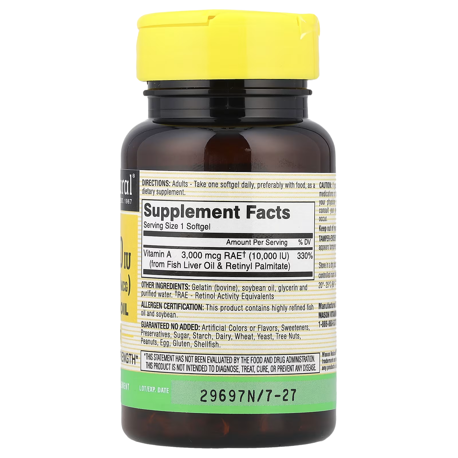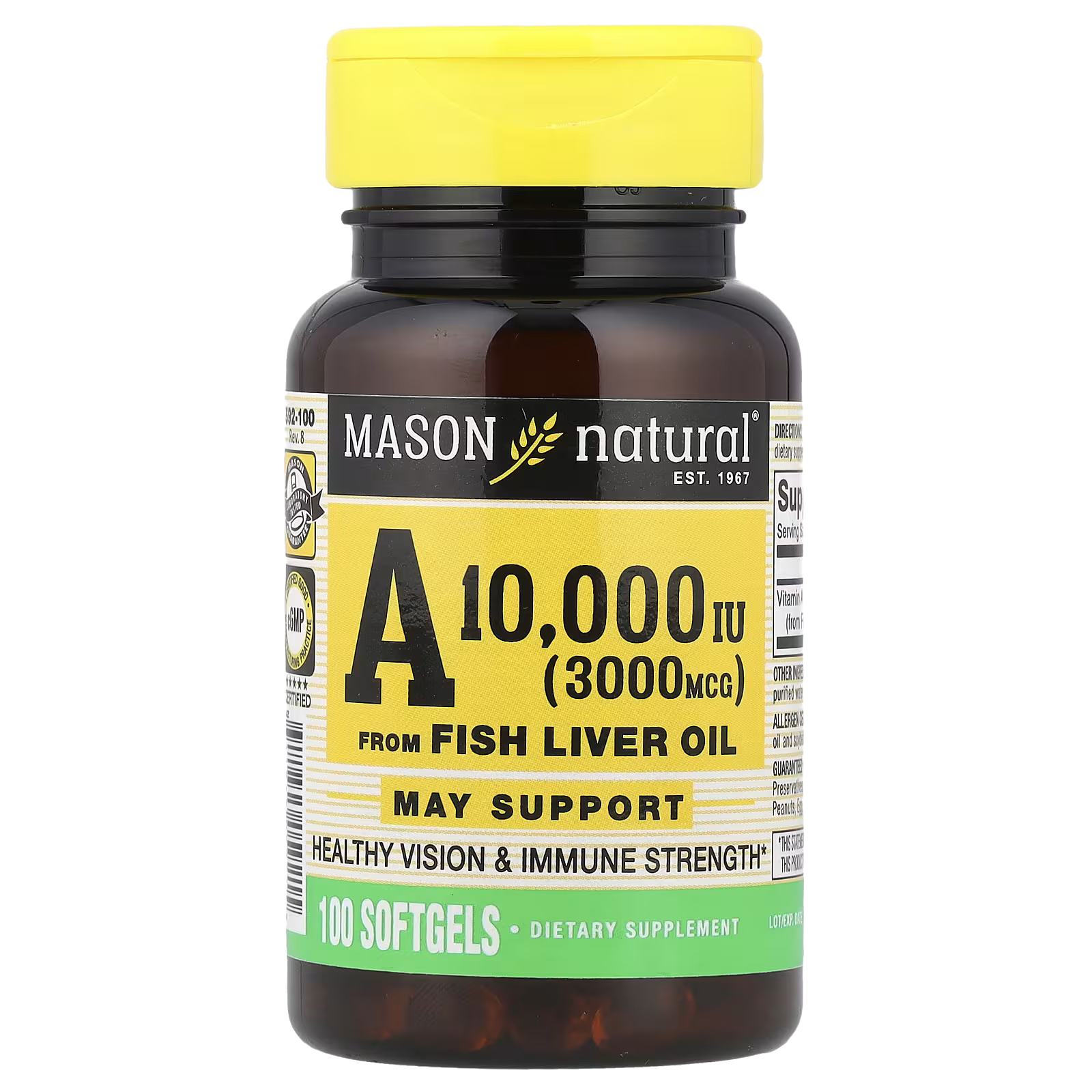 Mason Natural, Vitamin A from Fish Liver Oil, 3,000 mcg (10,000 IU), 100 Softgels