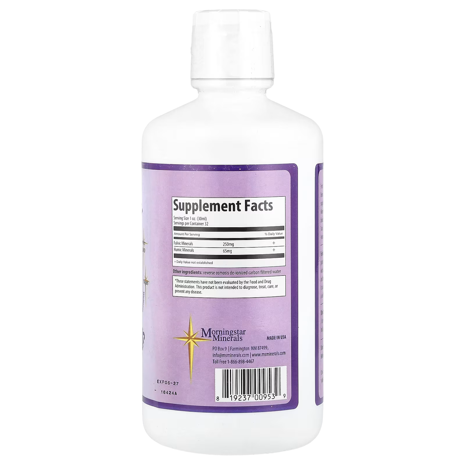 From the rich earth Morningstar Minerals brings you a blend of Fulvic & Humic minerals of an all natural dietary supplement. The plant derived, Bio-Available Liquid Minerals ensure superior absorption into the bloodstream. Derived from ancient plant matter rich in Trace Minerals, Trace Vitamins, Trace Elements & Trace Amino Acids in a Ph balanced state. ph 8.5-9.5.