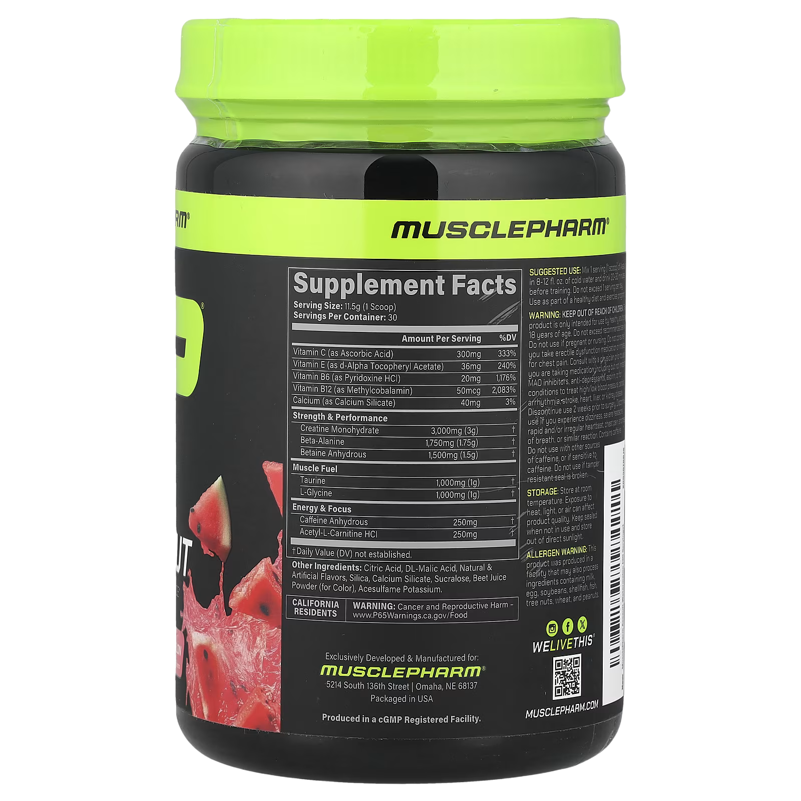 MusclePharm, AssaultĀ® Preworkout, Watermelon, 12.1 oz (344 g)