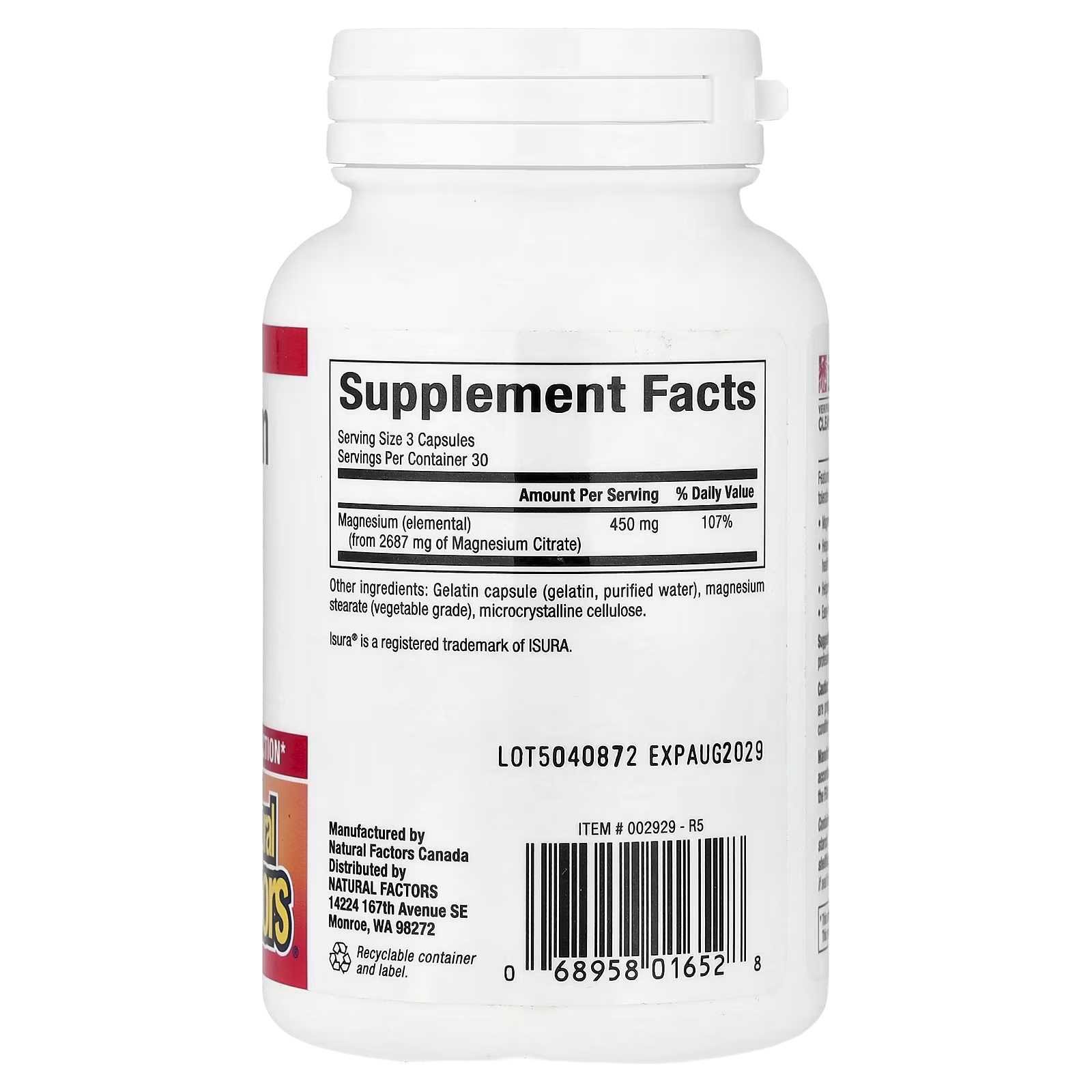 Natural Factors, Magnesium Citrate, 90 Capsules (150 mg per Capsule)