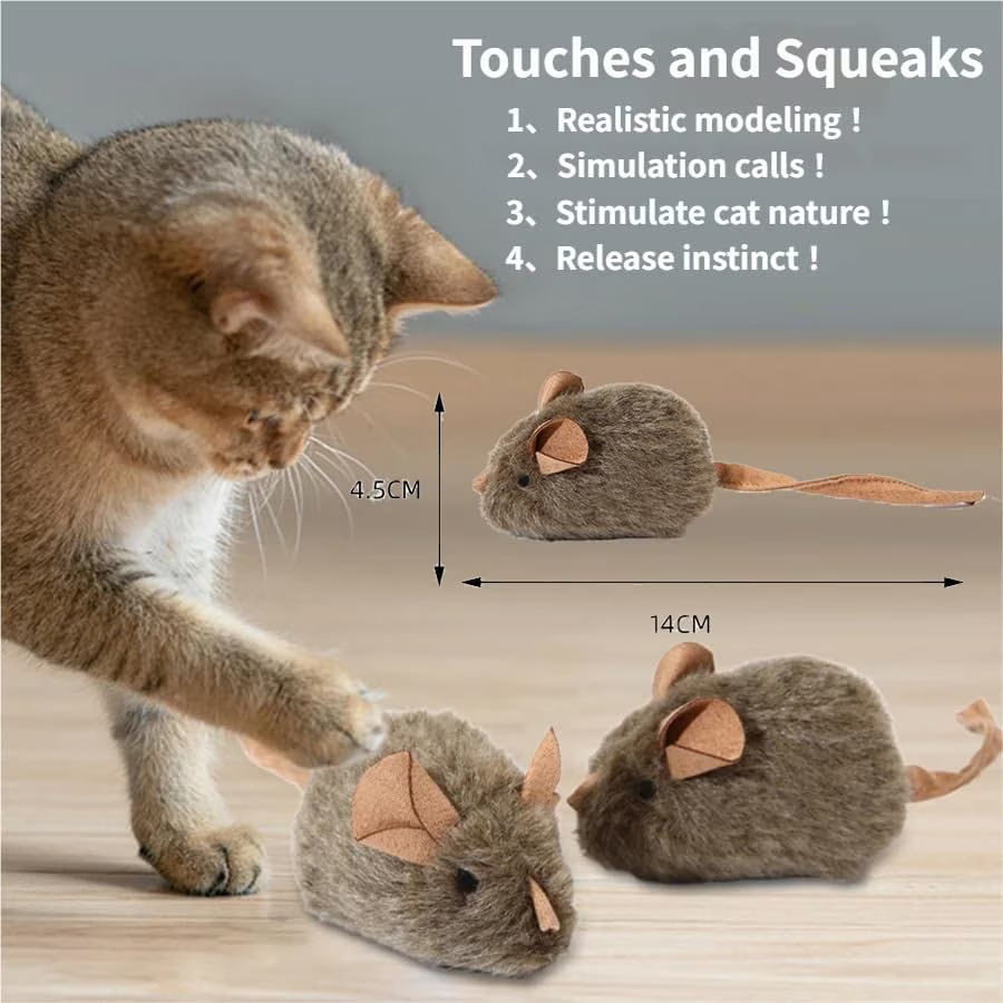 NonoPets Interactive Squeaky Plush Mouse Chasers Cat Toy