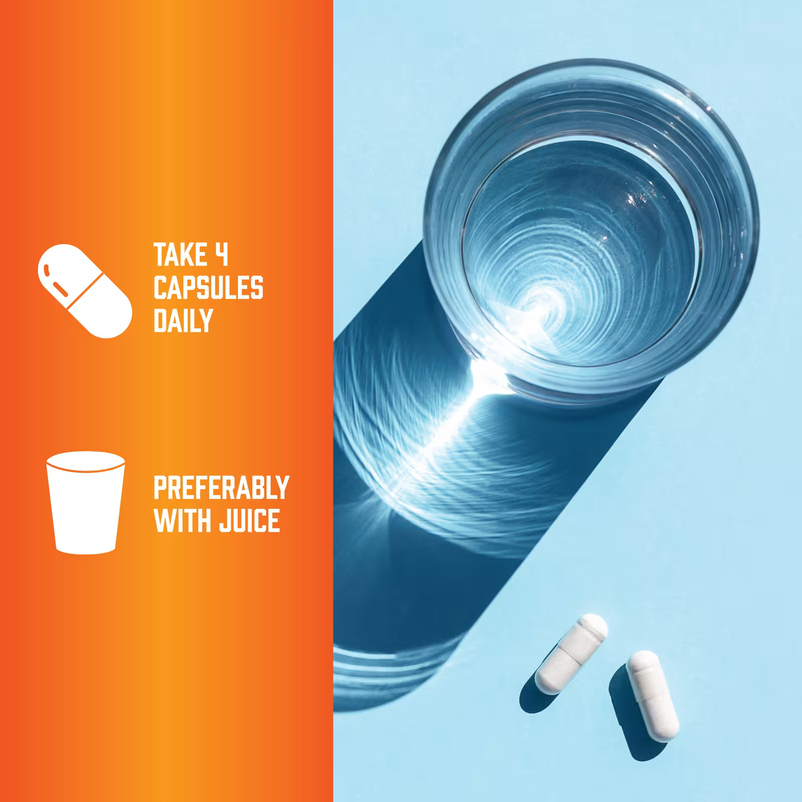 Hypromellose (cellulose capsule), hydroxypropyl cellulose, stearic acid (vegetable source) and silicon dioxide.