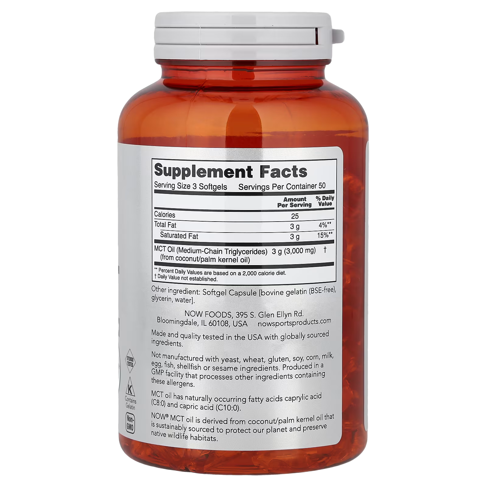 NOW Foods, Sports, MCT Oil, 1,000 mg, 150 Softgels