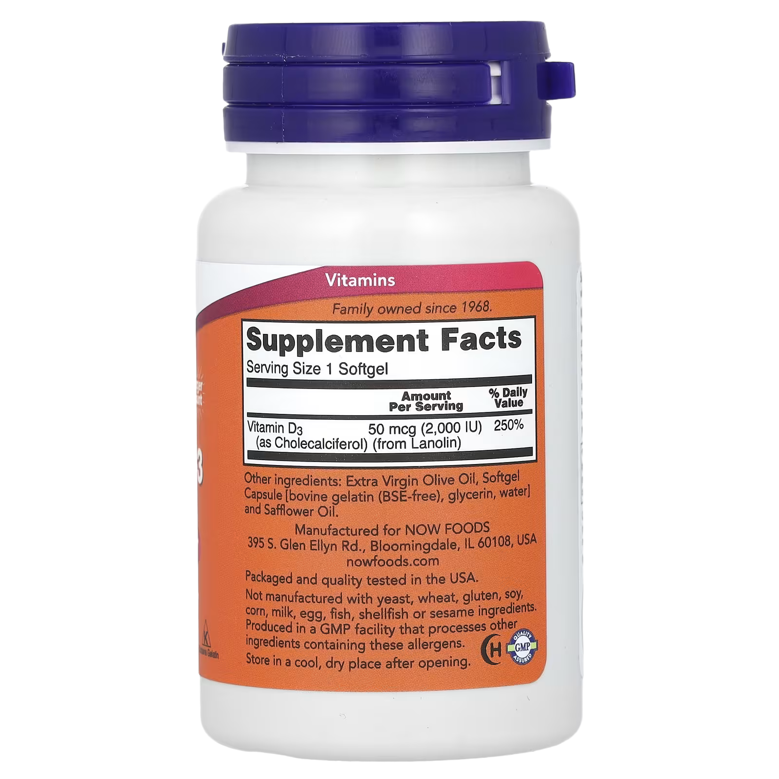 NOW Foods, Vitamin D-3, High Potency, 2,000 IU, 240 Softgels