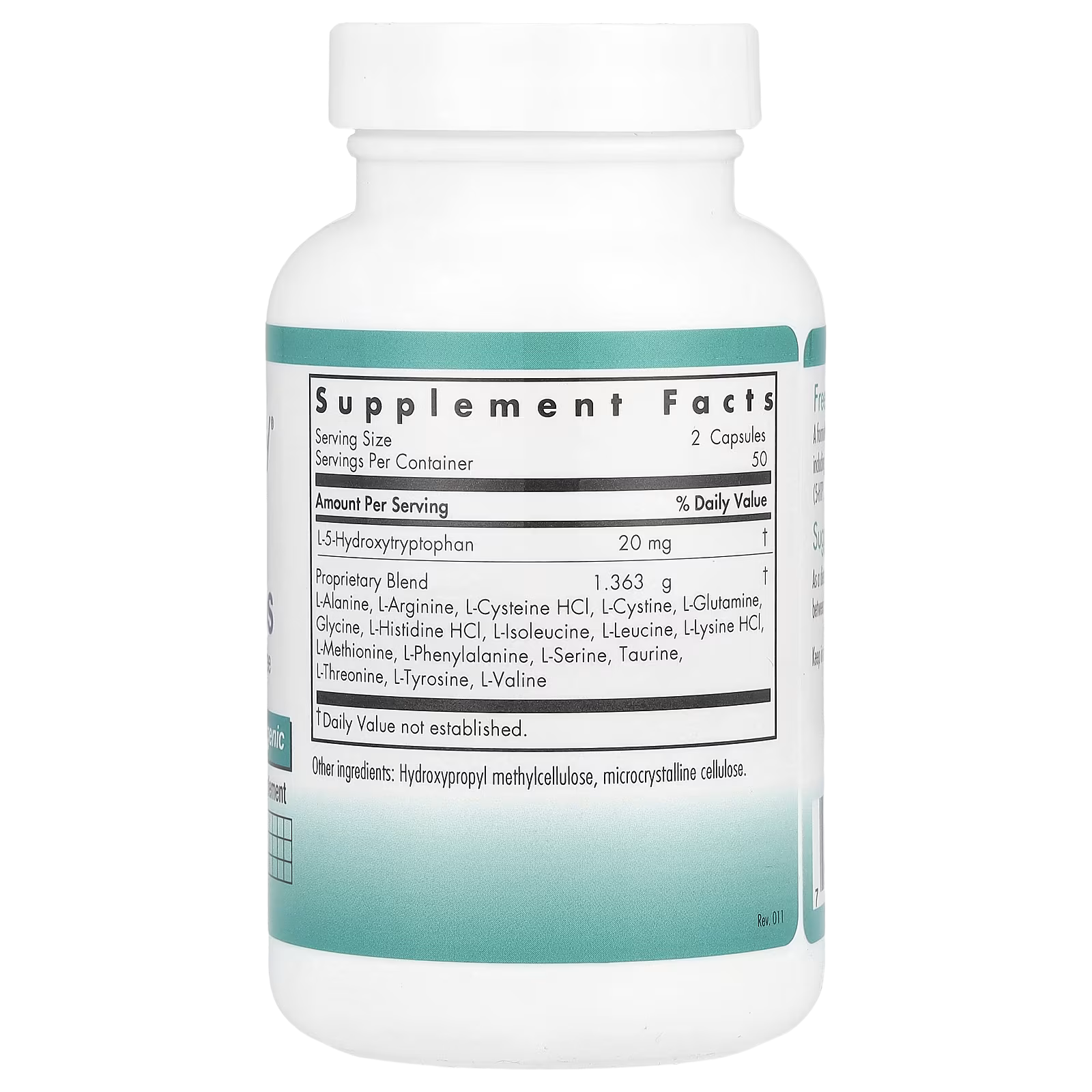 A formulation of 17 naturally occurring amino acids in their free forms, including 9 essential amino acids, as well as L-5-Hydroxytryptophan (5-HTP).