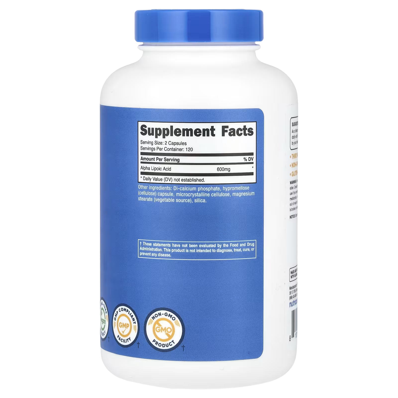 Nutricost Alpha Lipoic Acid contains 600mg of potent, high-quality Alpha Lipoic Acid (ALA) Per Serving (300mg in each capsule). They are non-GMO, gluten-free, vegetarian friendly, and consist of both S-Alpha Lipoic Acid (S-LA) and R-Alpha Lipoic Acid (R-LA).