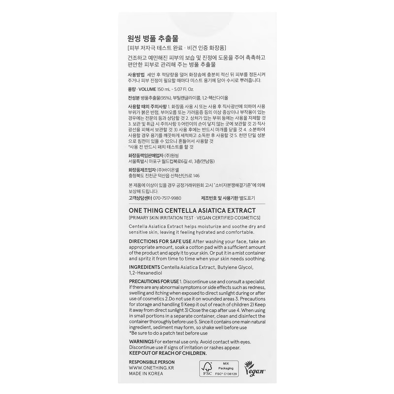 One Thing, Centella Asiatica Extract, 5.07 fl oz (150 ml)