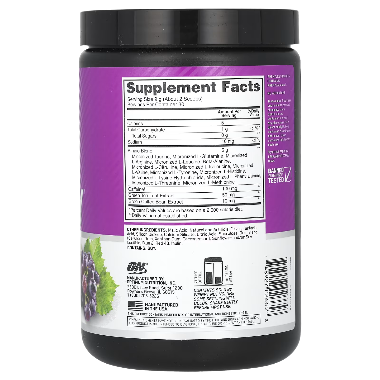 Optimum Nutrition, Essential Amin.O. Energy®, Concord Grape, 9.5 oz (270 g)