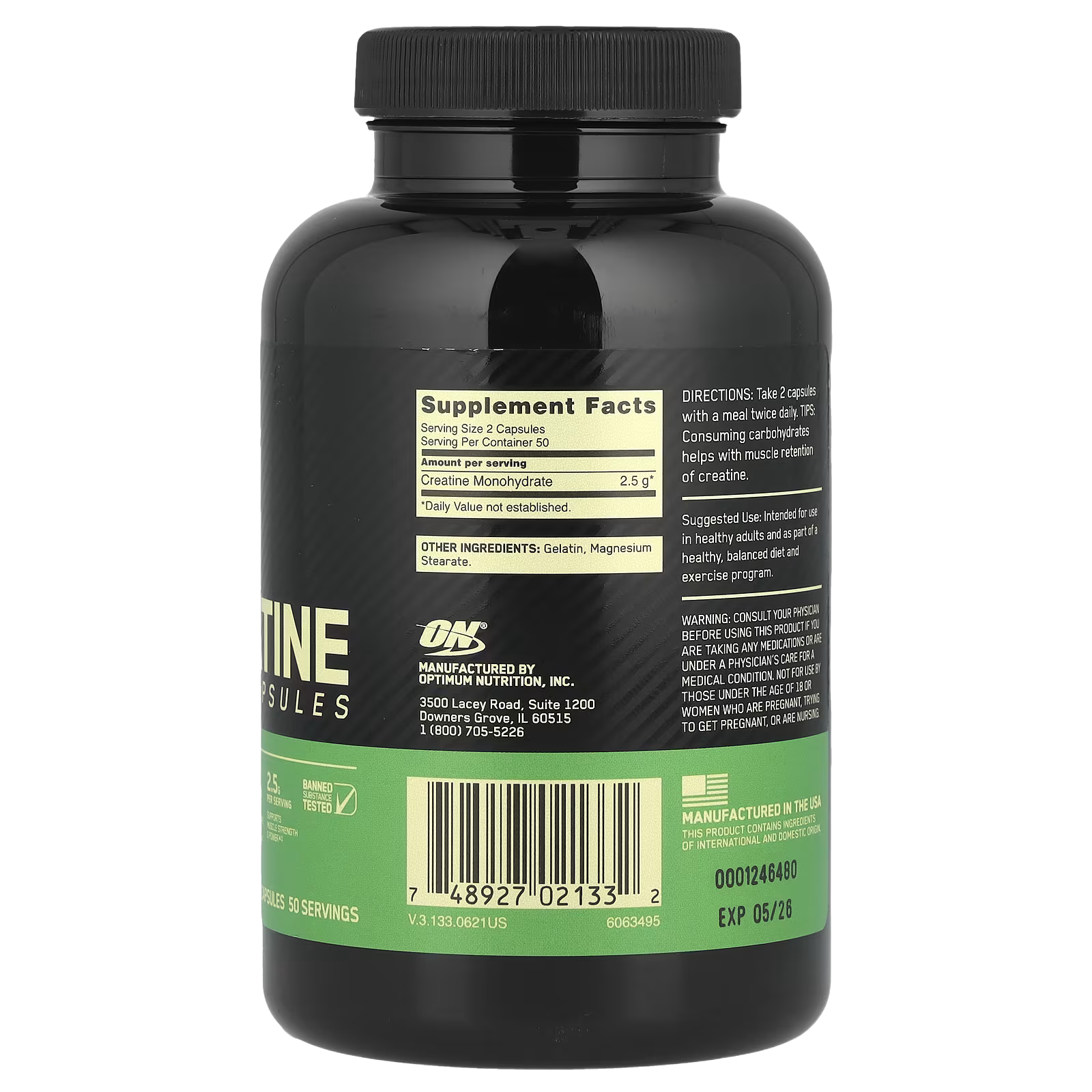 Optimum Nutrition, Micronized Creatine Capsules, 100 Capsules (1.25 g per Capsule )
