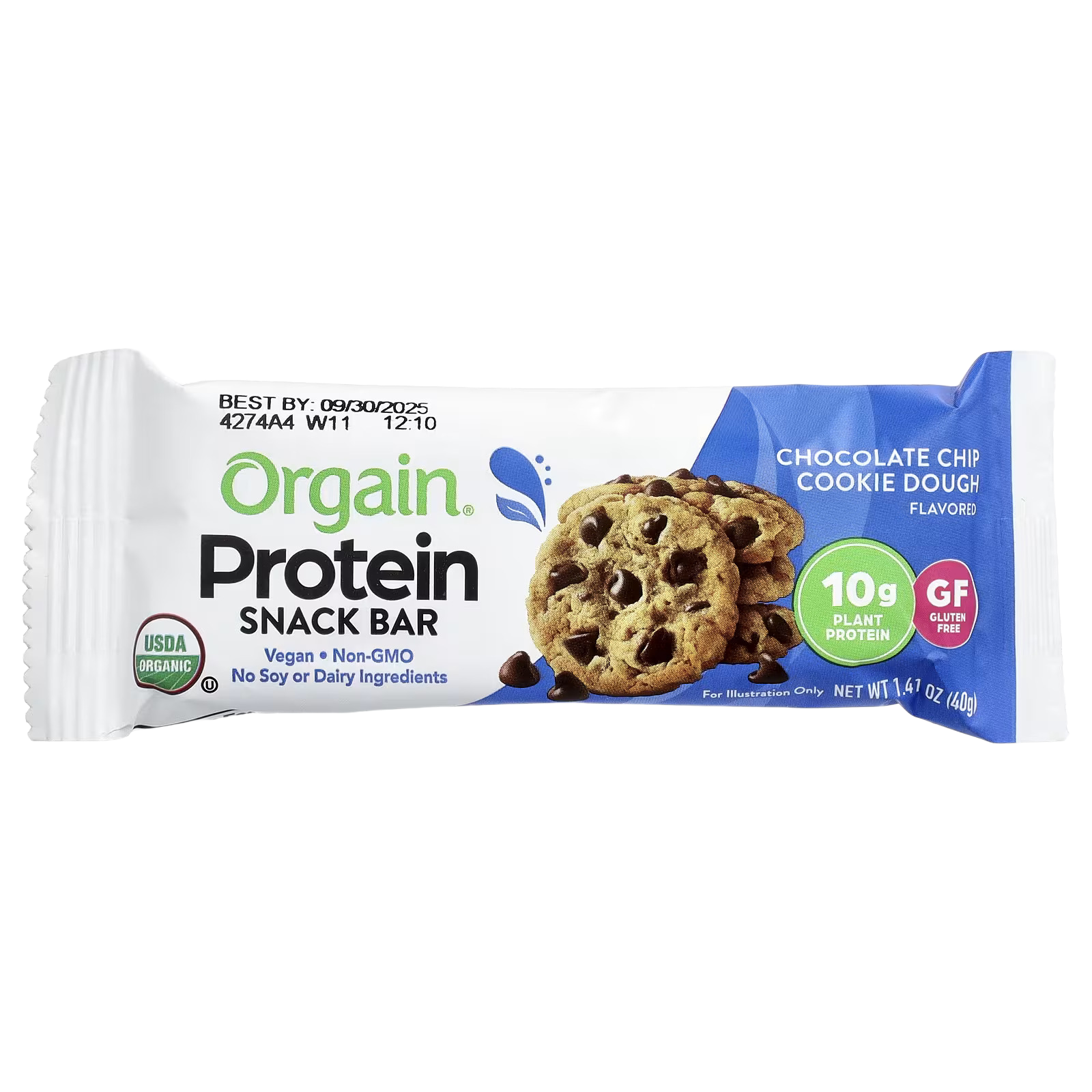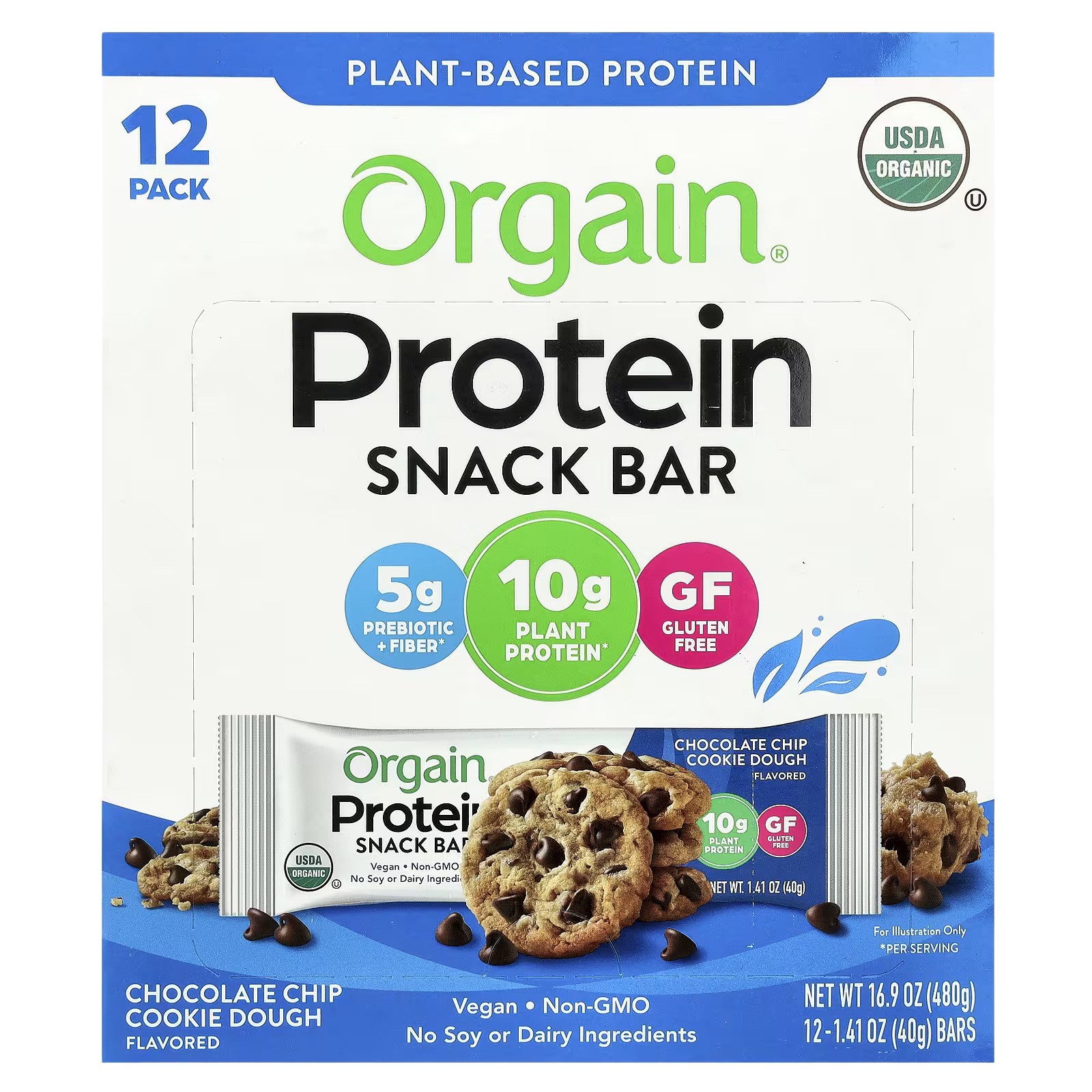 Orgain, Plant-Based Protein Snack Bar, Chocolate Chip Cookie Dough, 12 Bars, 1.41 oz (40 g) Each