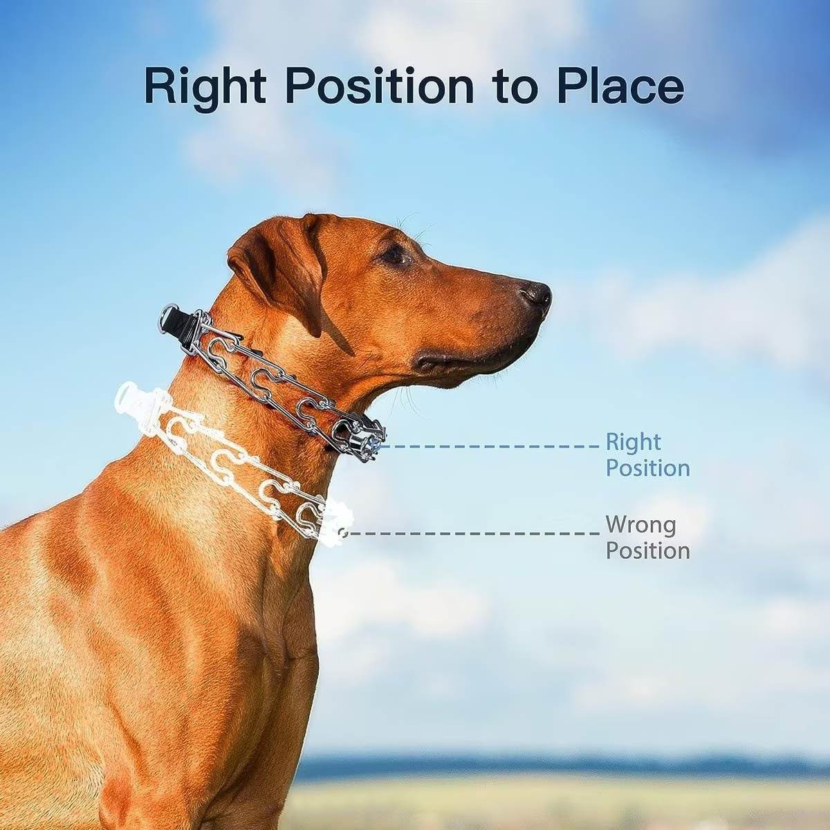 Rubber caps on the polished links to protect your pup’s neck when properly fitted.