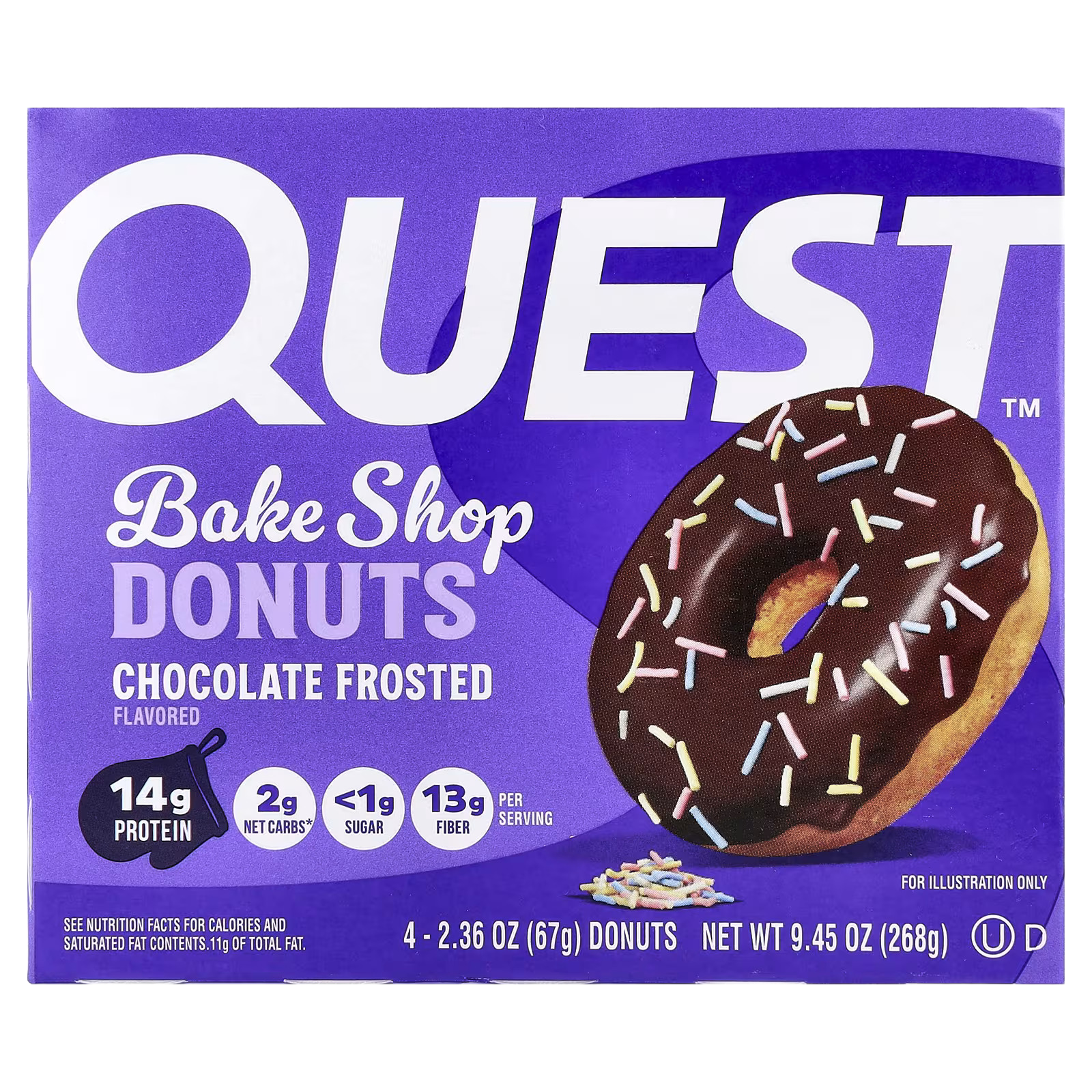 Quest Nutrition, Bake Shop Donuts, Chocolate Frosted, 4 Donuts, 2.36 oz (67 g) Each