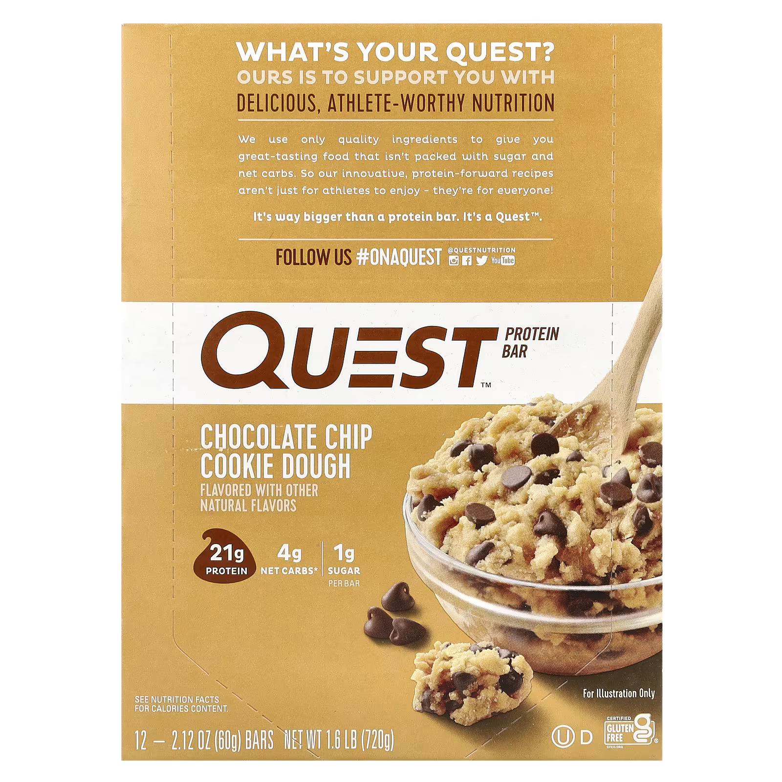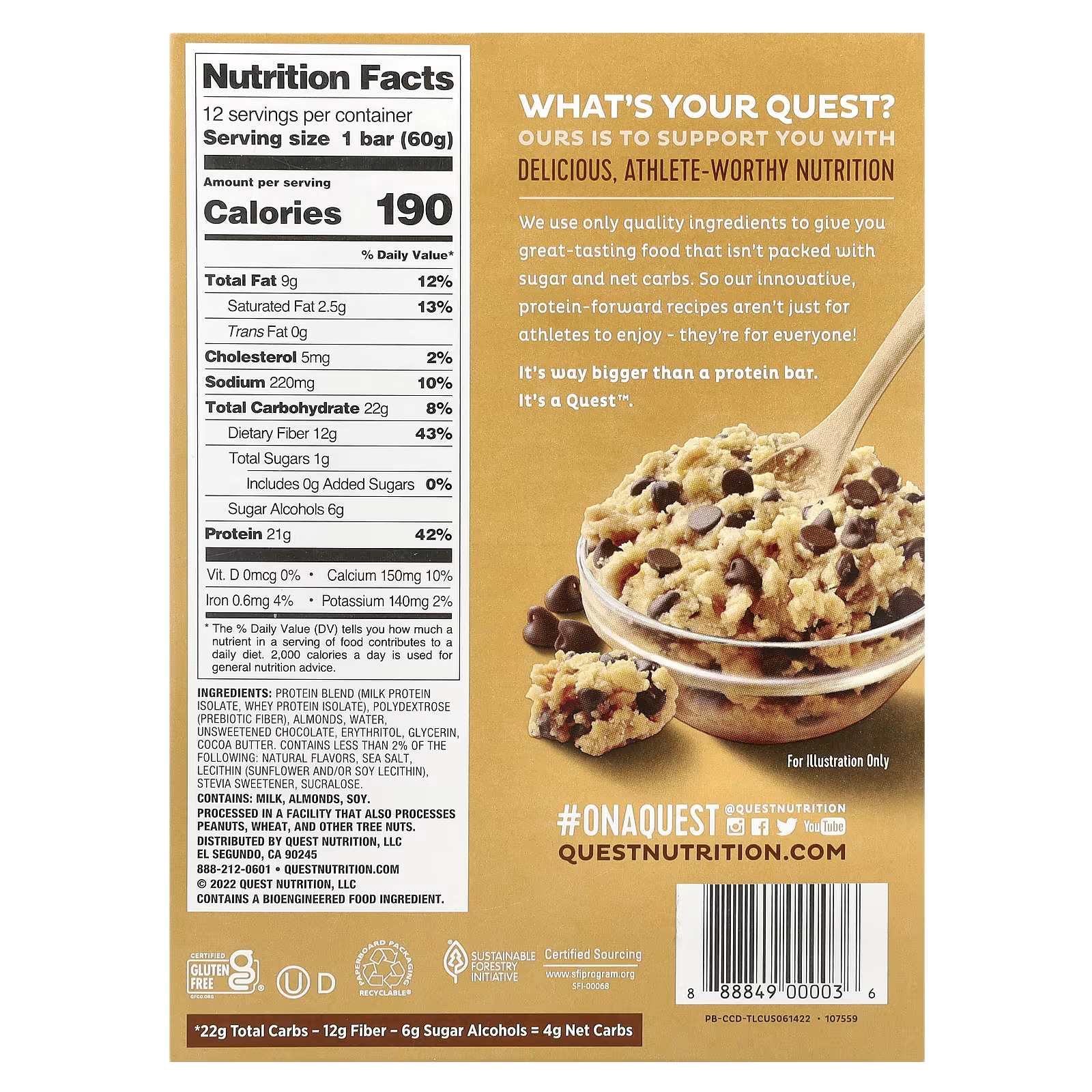 Quest Nutrition, Protein Bar, Chocolate Chip Cookie Dough, 12 Bars, 2.12 oz (60 g) Each