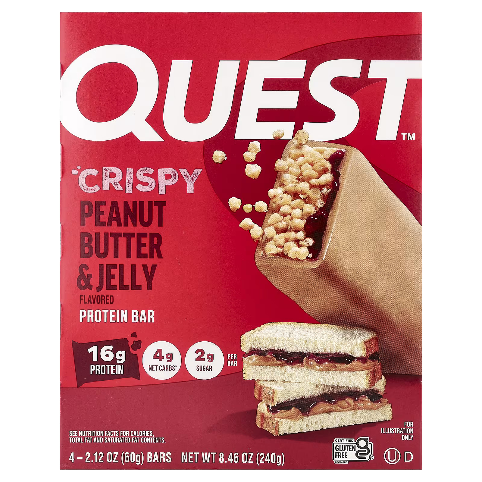 Quest Nutrition, Protein Bar, Crispy Peanut Butter & Jelly, 4 Bars, 2.12 oz (60 g) Each