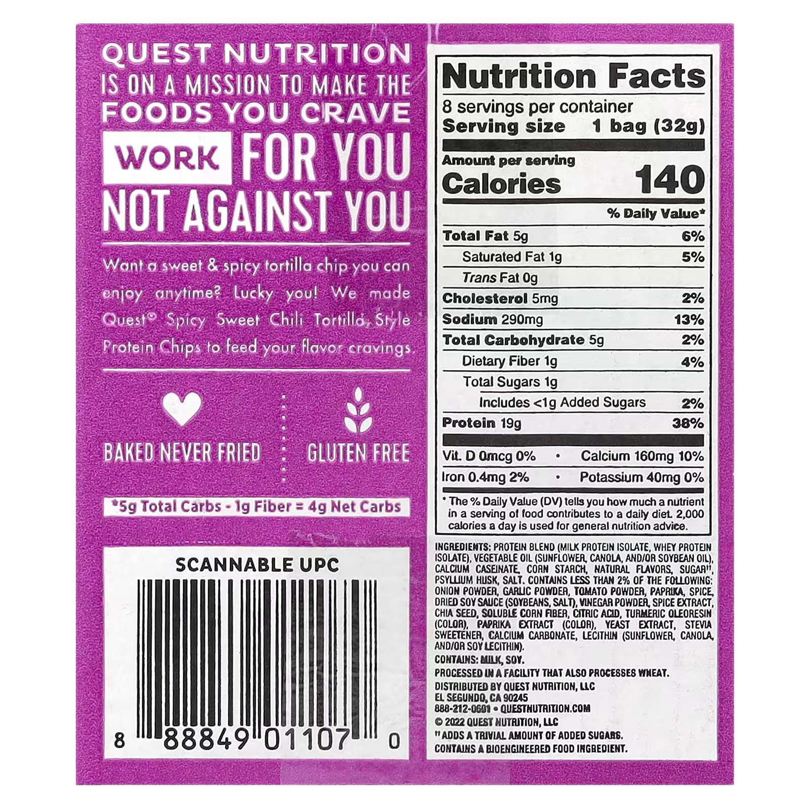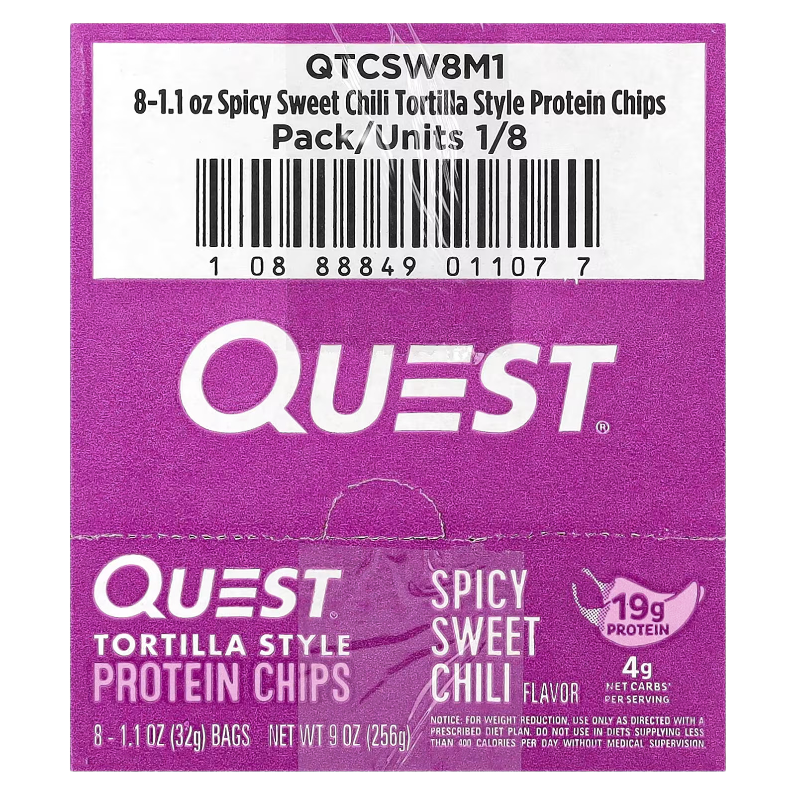 Quest Nutrition, Tortilla Style Protein Chips, Spicy Sweet Chili, 8 Bags, 1.1 oz (32 g) Each