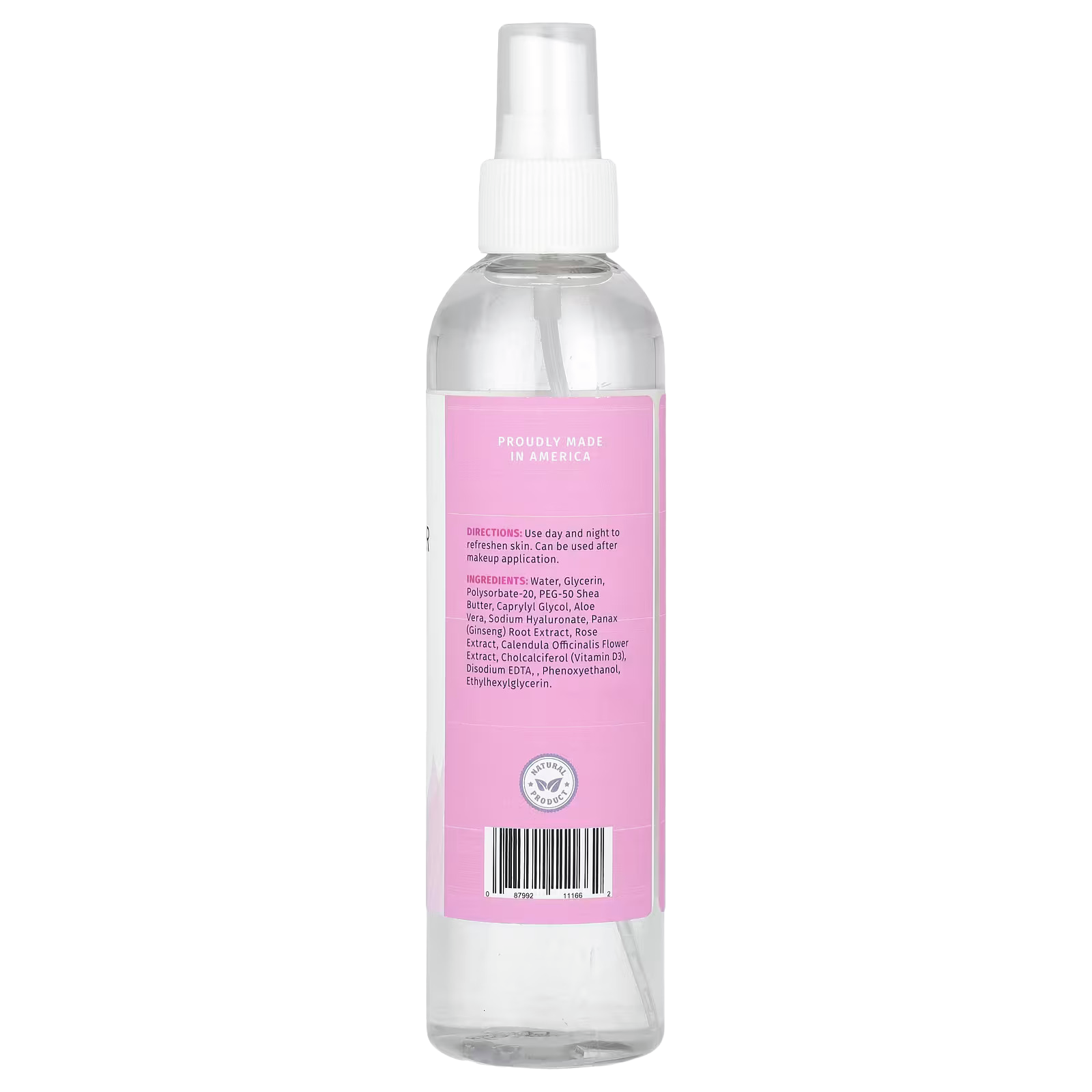 Water, glycerin, polysorbate-20, peg-50 shea butter, caprylyl glycol, aloe vera, sodium hyaluronate, panax (ginseng) root extract, rose extract, calendula officinalis flower extract, cholcalciferol (vitamin d3), disodium edta, phenoxyethanol, ethylhexylglycerin.