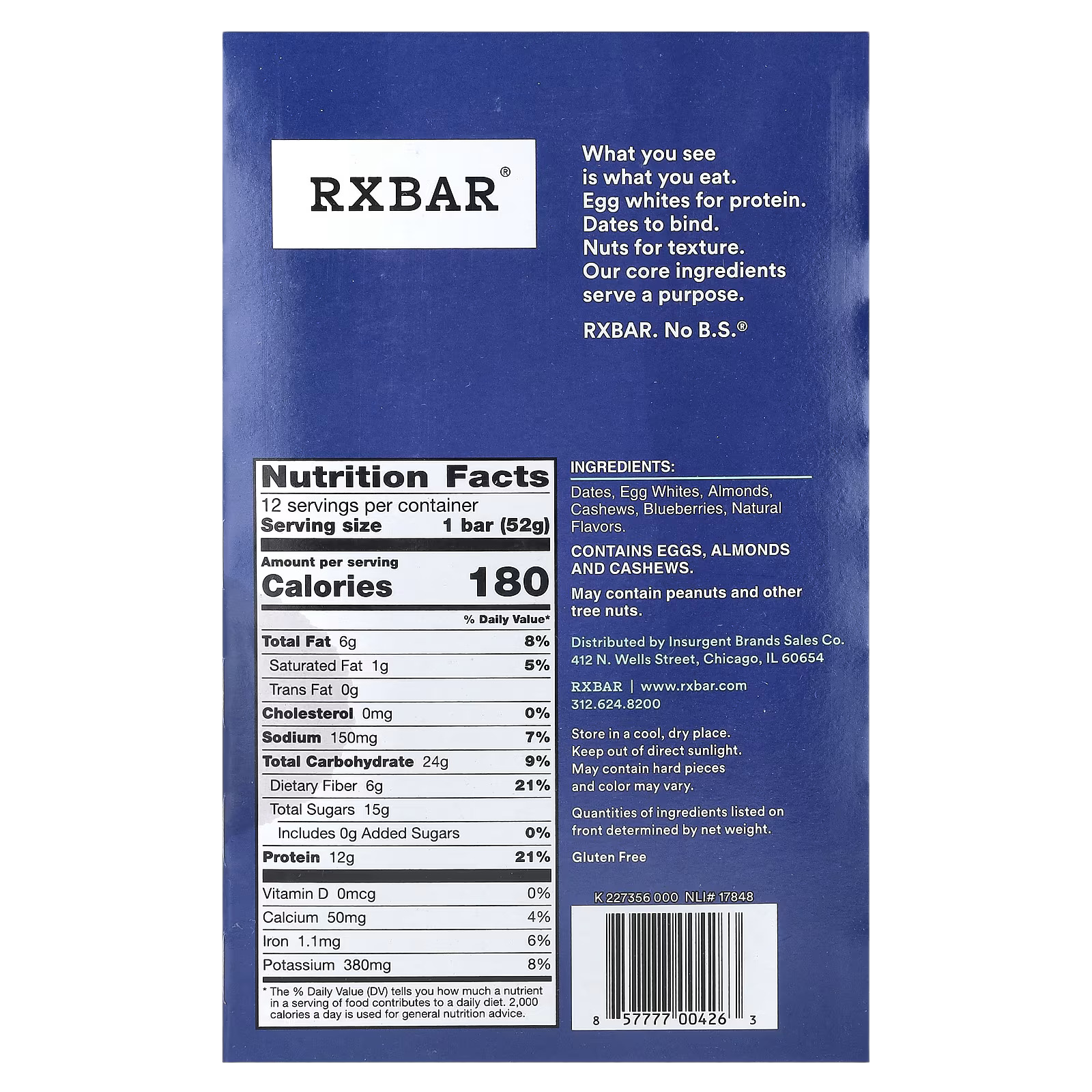 RXBAR, Protein Bar, Blueberry, 12 Bars, 1.8 oz (52 g) Each