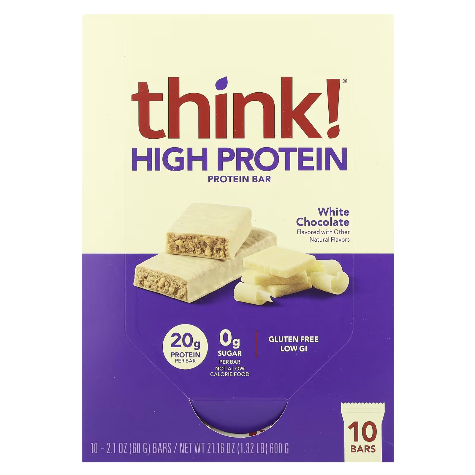 Think !, High Protein Bars, White Chocolate, 10 Bars, 2.1 oz (60 g) Each