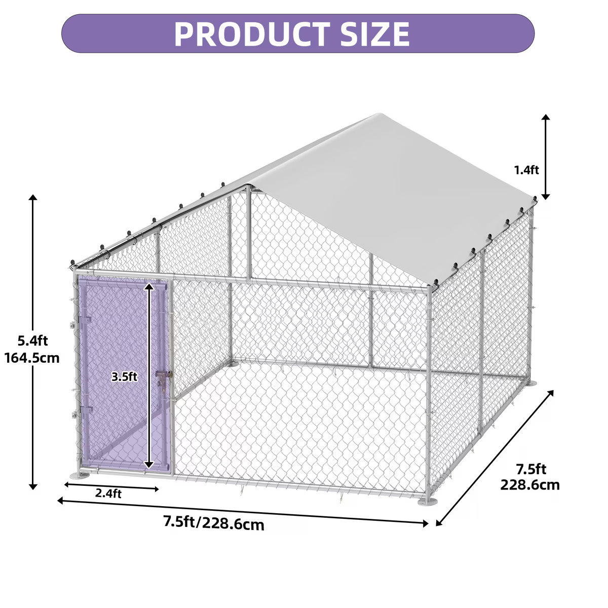 Wooflex Heavy Duty Outdoor Dog Kennel with Roof & Metal Gate, 7.5 x 7.5-ft