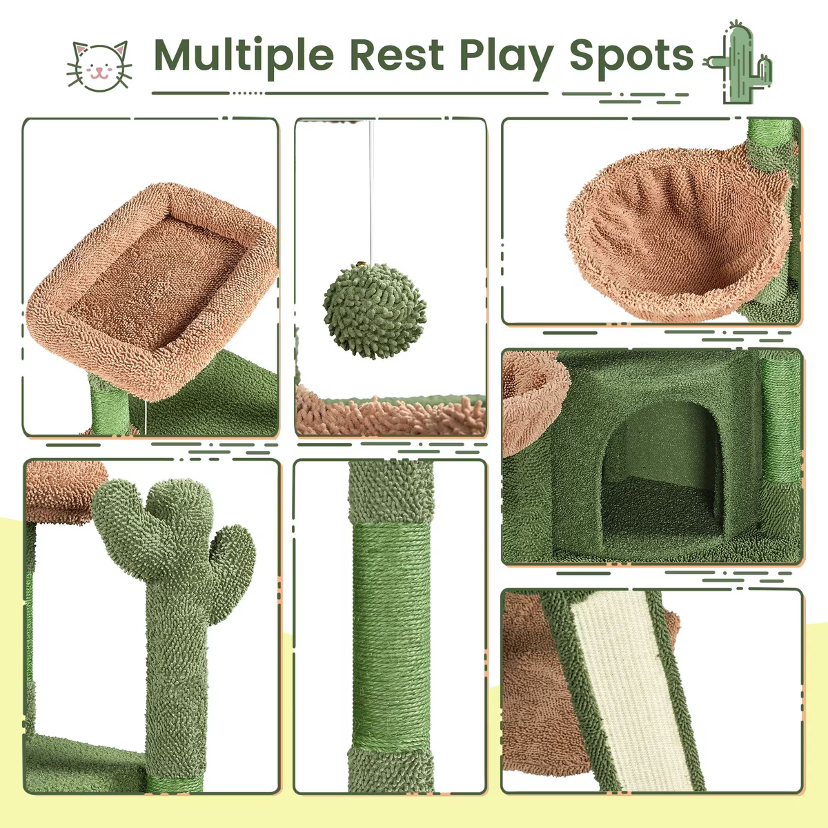 Yaheetech Cactus 42-in Plush Cat Tree, GreenBrown