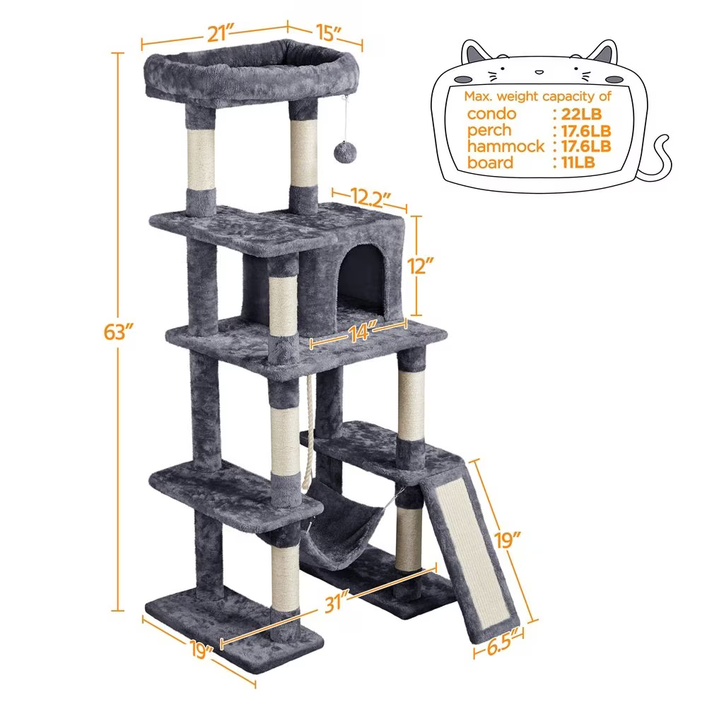 Yaheetech Multi-Level 63-in Plush Cat Tree, Dark Gray