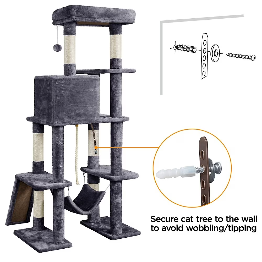 Cats are healthiest when they have mental and physical stimulation—and you can provide them with that when you set up the Yaheetech Multi-Level 63-in Plush Cat Tree. The natural sisal ropes help direct scratching behavior appropriately, as well as keeping your feline friends’ claws healthy. There’s also a top perch with raised edges that gives your cat a great viewpoint from which to survey her kingdom.