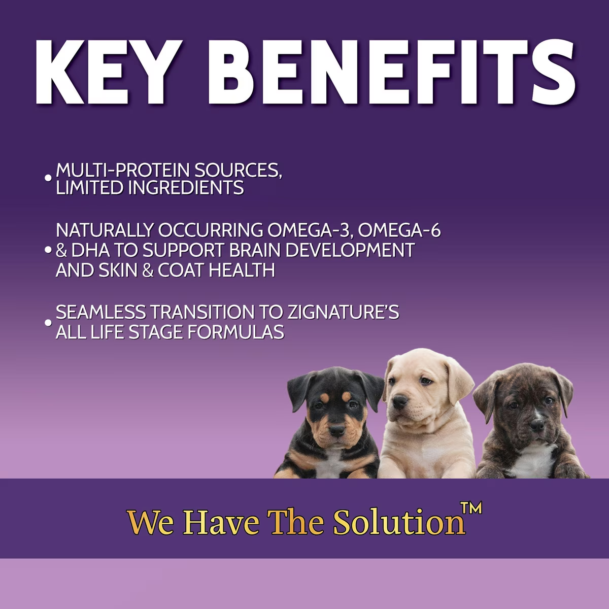 Premium proteins are the first ingredients in this dog food to ensure optimal protein levels for puppy growth.