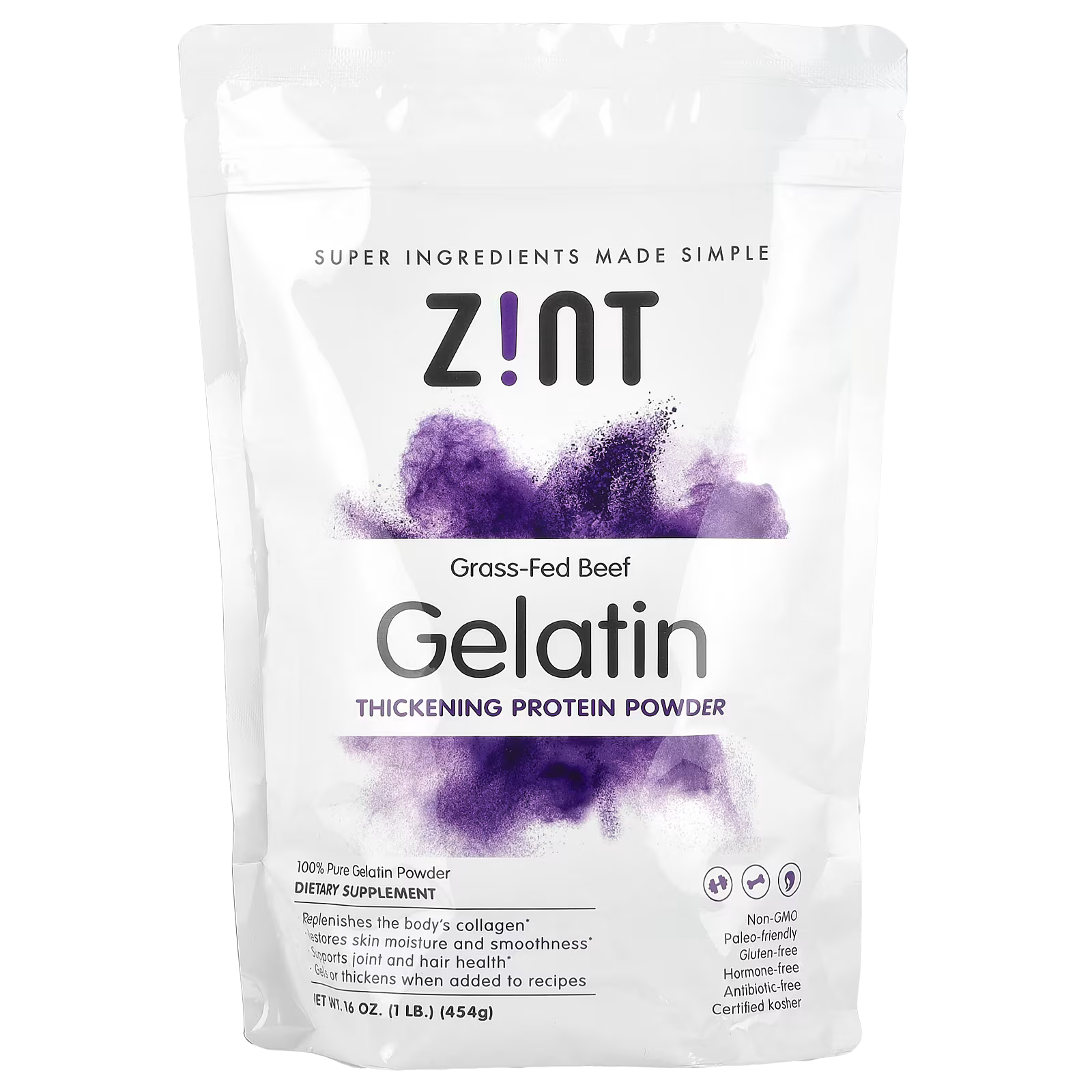 Zint, Gelatin Thickening Protein Powder, Grass-Fed Beef, 16 oz (454 g)