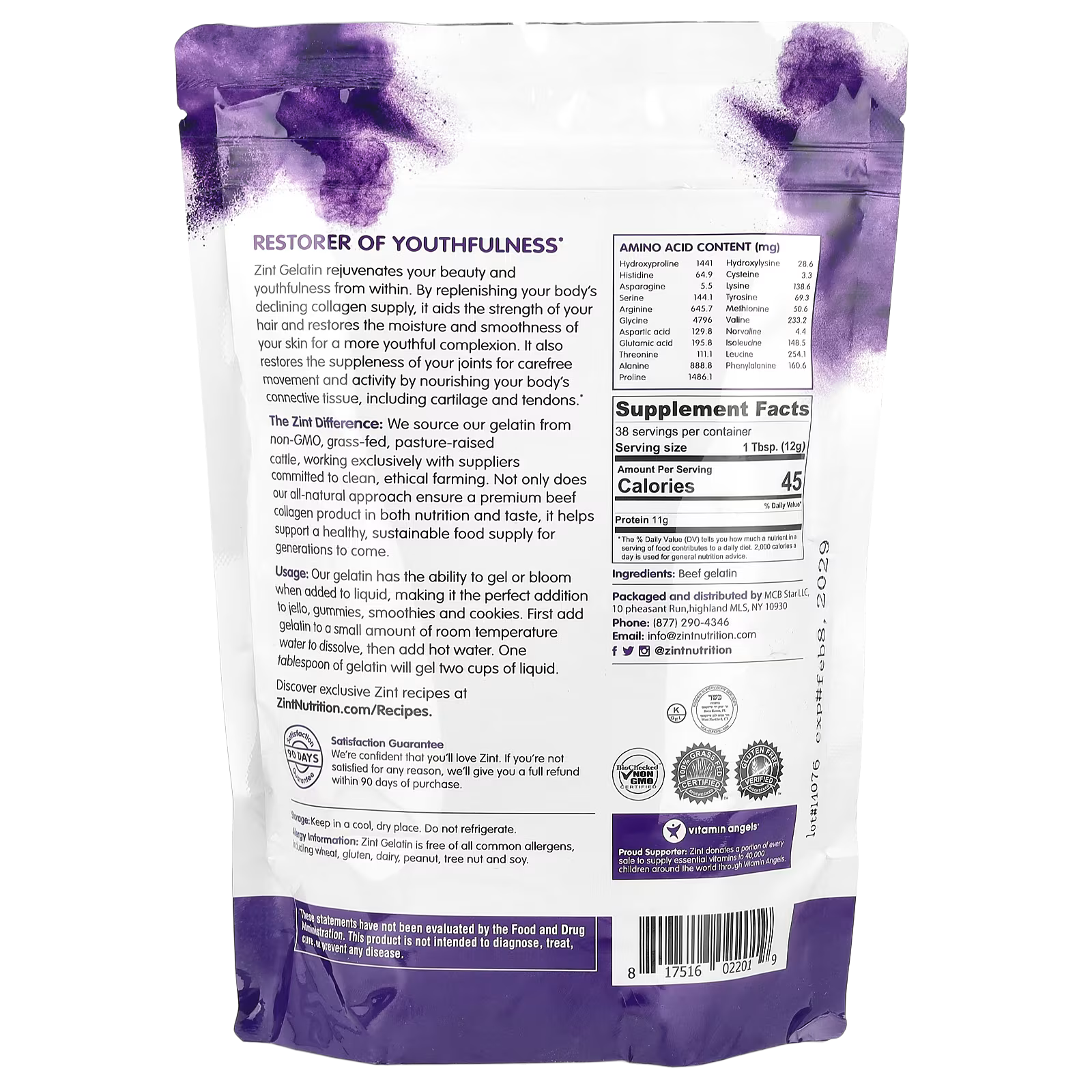 The Zint Difference: We source our gelatin from non-GMO, grass-fed, pasture-raised cattle, working exclusively with suppliers committed to clean, ethical farming. Not only does our all-natural approach ensure a premium beef collagen product in both nutrition and taste, it helps support a healthy, sustainable food supply for generations to come.